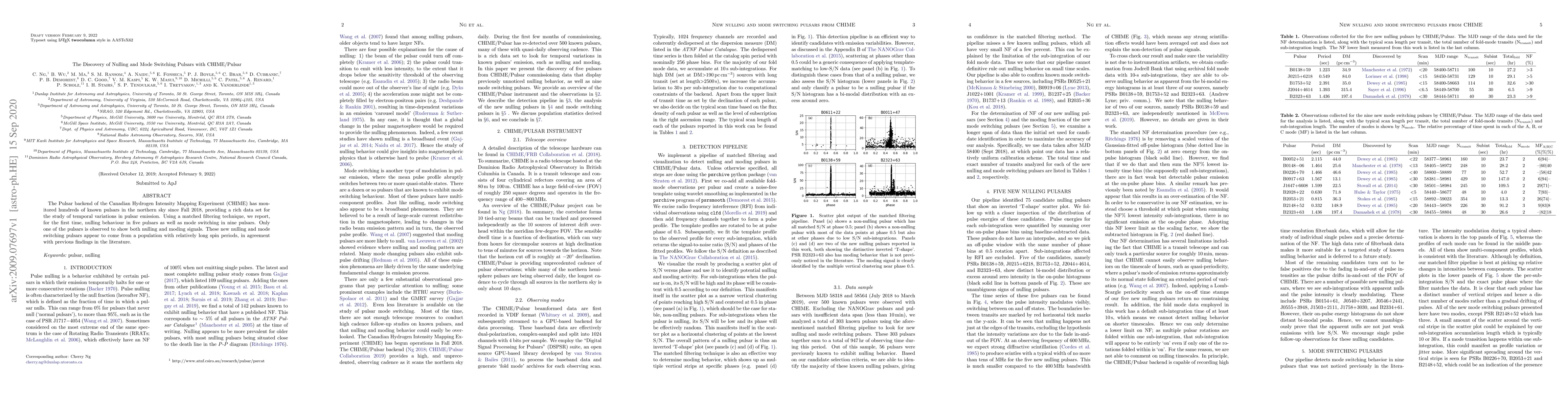 The CHIME/Pulsar project has identified nulling behavior in five and mode switching in nine pulsars, revealing a population with long spin periods. Only one pulsar exhibits both phenomena, contributing to the understanding of pulsar emission variations.