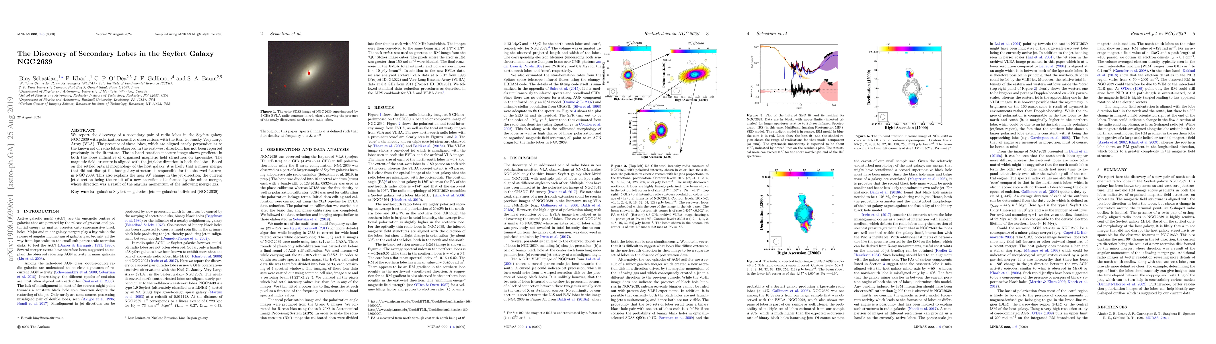 The discovery of secondary radio lobes in Seyfert galaxy NGC 2639, observed with the VLA, reveals a previously unreported pair aligned perpendicularly to existing lobes, suggesting a minor merger's influence on the galaxy's magnetic field and jet direction.