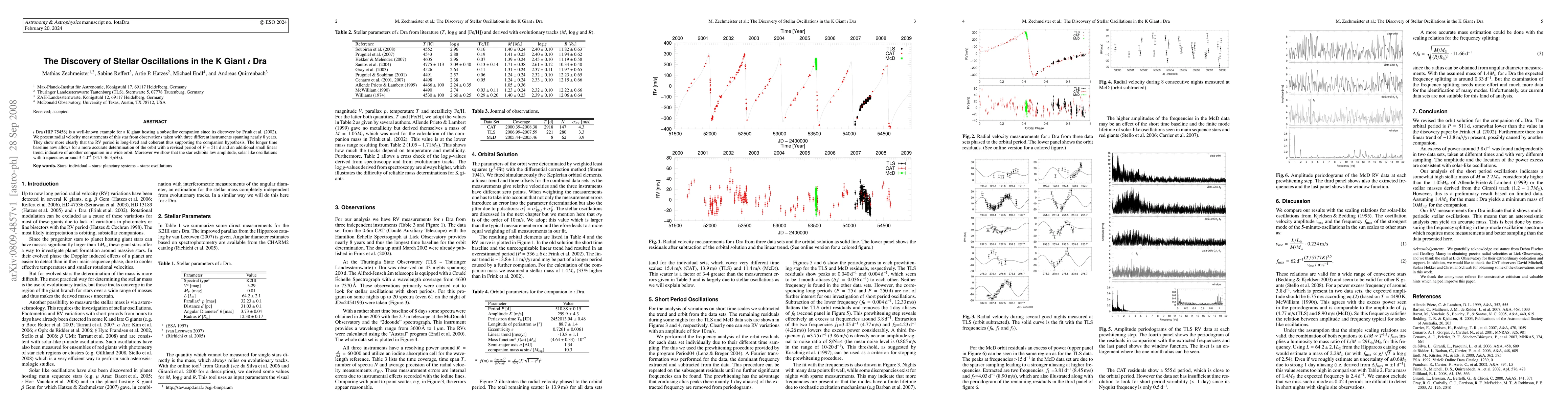 This paper reports the discovery of stellar oscillations in the K giant $\iota$ Dra, confirming a long-lived substellar companion with a revised orbital period of 511 days. The star also displays low-amplitude solar-like oscillations with frequencies around 3-4 d$^{-1}$.