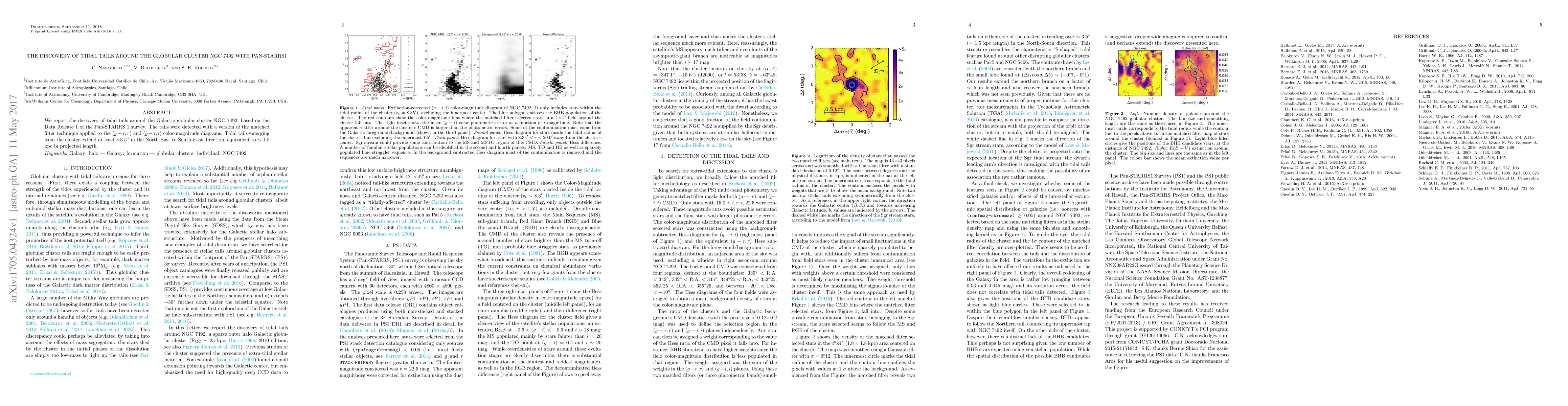The research reports the discovery of tidal tails around the globular cluster NGC 7492 using Pan-STARRS1 data, revealing tails extending at least 3.5 degrees (1.5 kpc) in length from the cluster. The detection was achieved through a matched filter technique applied to color-magnitude diagrams.