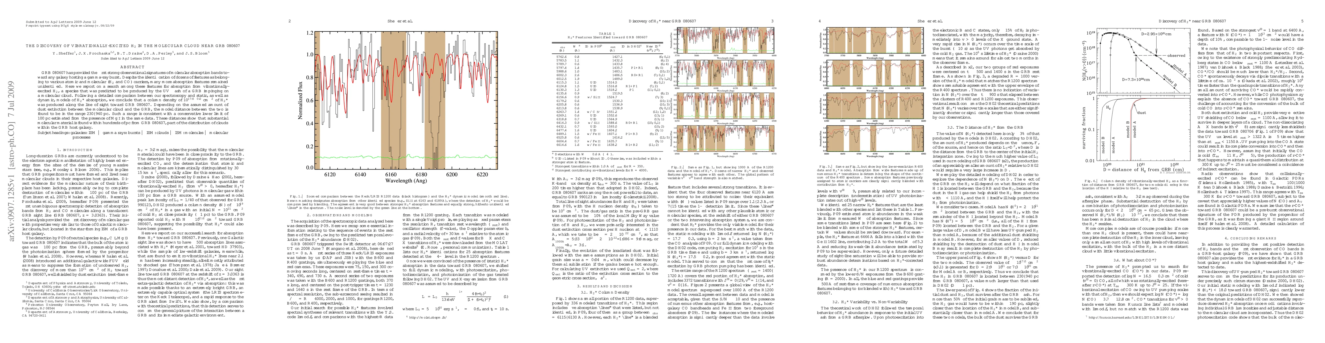 GRB 080607 has provided the first strong observational signatures of molecular absorption bands toward any galaxy hosting a gamma-ray burst. Despite the identification of dozens of features as belonging to various atomic and molecular (H_2 and CO) carriers, many more absorption features remained unidentified. Here we report on a search among these features for absorption from vibrationally-excited H_2, a species that was predicted to be produced by the UV flash of a GRB impinging on a molecular cloud. Following a detailed comparison between our spectroscopy and static, as well as dynamic, models of H_2* absorption, we conclude that a column density of 10^{17.5+-0.2} cm^{-2} of H_2* was produced along the line of sight toward GRB 080607. Depending on the assumed amount of dust extinction between the molecular cloud and the GRB, the model distance between the two is found to be in the range 230--940 pc. Such a range is consistent with a conservative lower limit of 100 pc estimated from the presence of Mg I in the same data. These distances show that substantial molecular material is found within hundreds of pc from GRB 080607, part of the distribution of clouds within the GRB host galaxy.