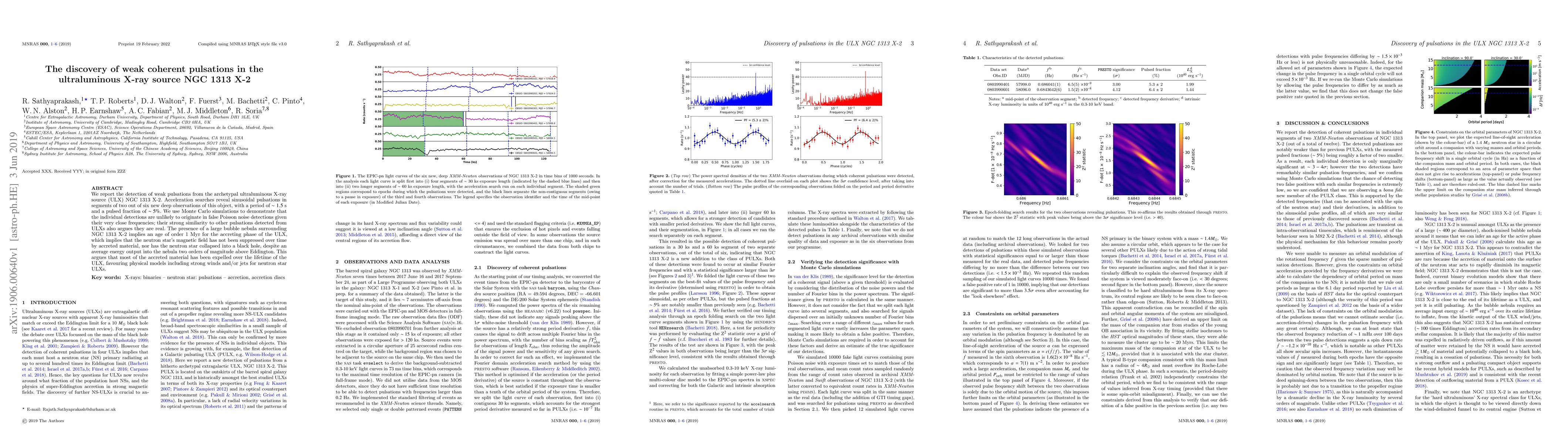 Researchers detected weak pulsations in the ultraluminous X-ray source NGC 1313 X-2, indicating a neutron star with an unsuppressed magnetic field. The findings suggest that most accreted material is expelled, supporting models involving strong winds and jets.
