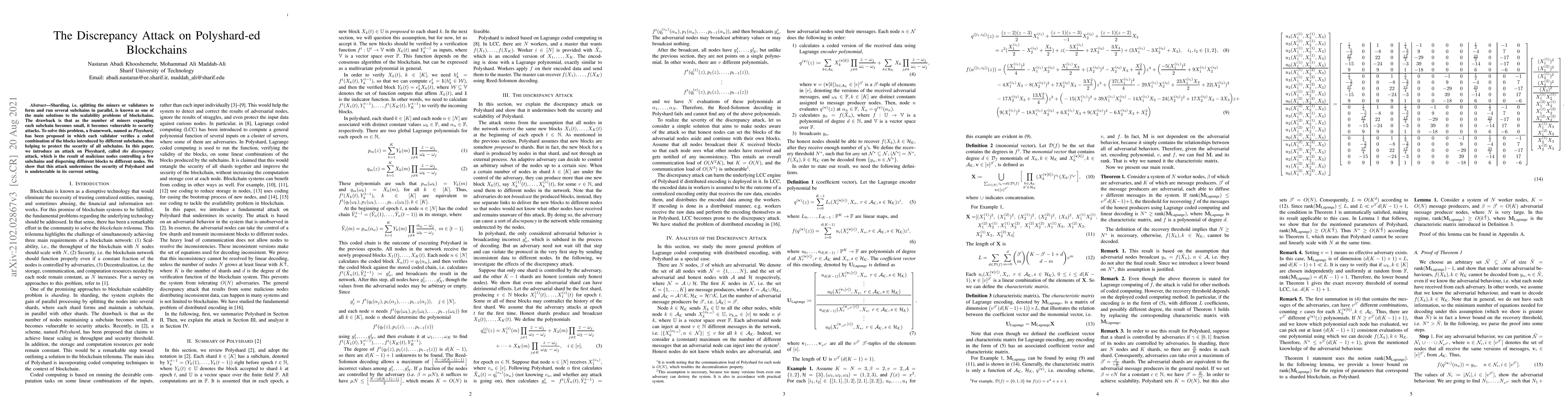 This paper presents a new attack, called the discrepancy attack, targeting the Polyshard blockchain scaling solution. The attack, executed by malicious nodes controlling a few subchains and distributing different blocks, undermines Polyshard's security and remains undetectable in its current form.
