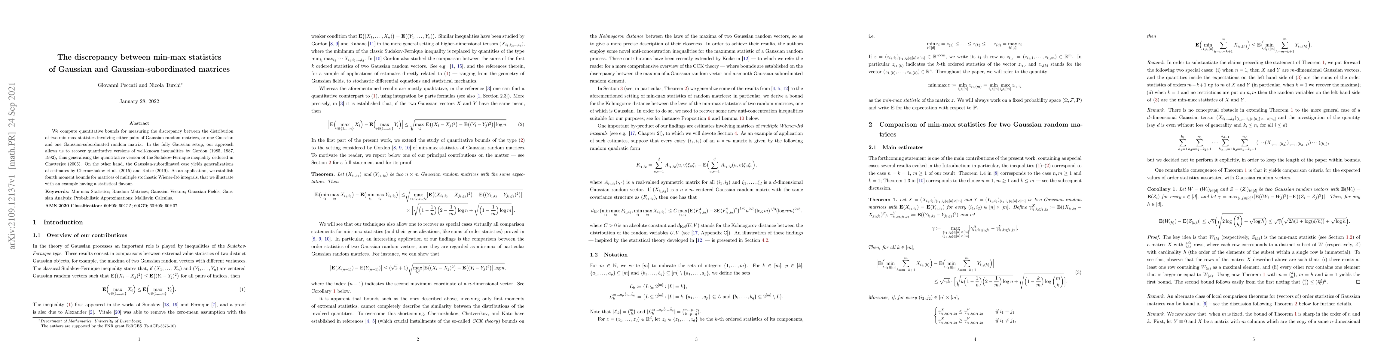 Researchers develop quantitative bounds to measure discrepancies between min-max statistics of Gaussian and Gaussian-subordinated matrices, generalizing known inequalities and establishing fourth moment bounds for stochastic Wiener-It ext{o} integrals.