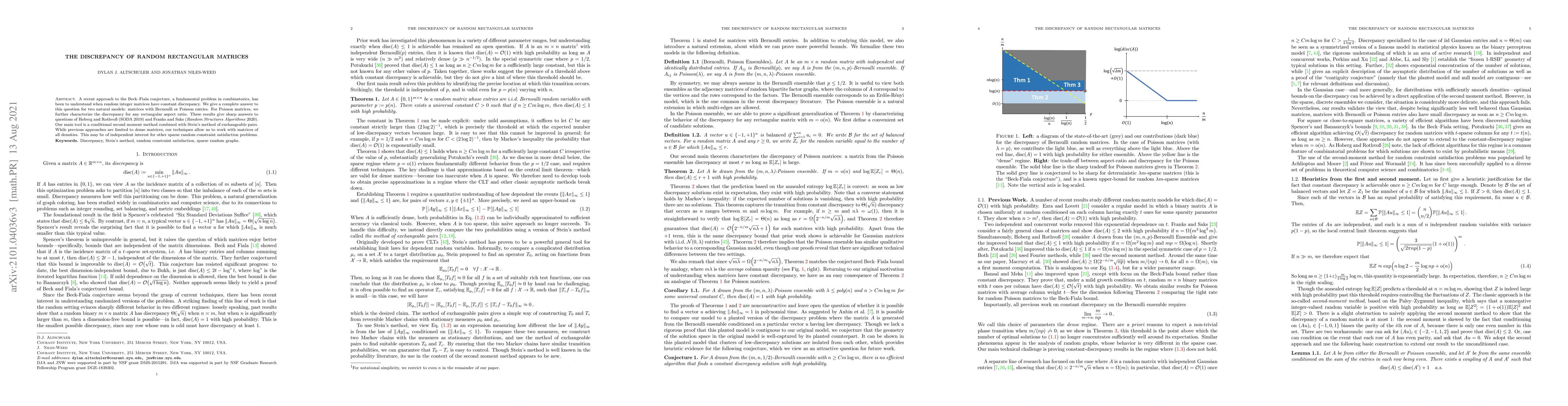 This paper resolves the Beck-Fiala conjecture by determining when random integer matrices with Bernoulli or Poisson entries exhibit constant discrepancy, providing sharp results for Poisson matrices of any rectangular aspect ratio. The authors employ a novel conditional second moment method and Stein's method of exchangeable pairs to achieve results applicable to matrices of all densities, extending beyond dense matrices.