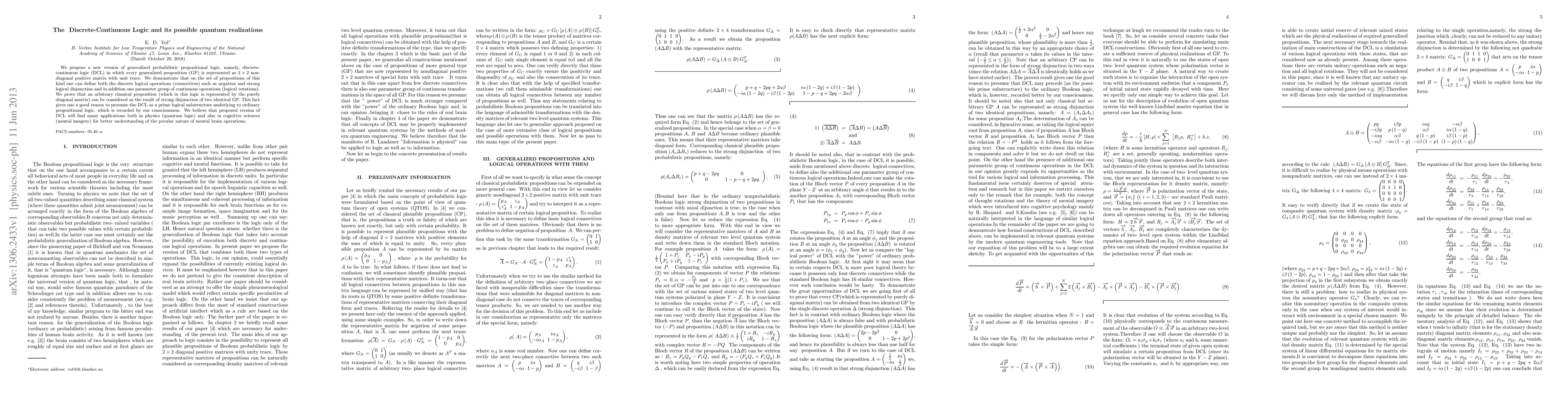 Researchers propose a new logic system called discrete-continuous logic (DCL), which combines discrete and continuous operations to model classical propositions. They show that DCL can represent ordinary propositional logic and may have applications in physics and cognitive sciences.