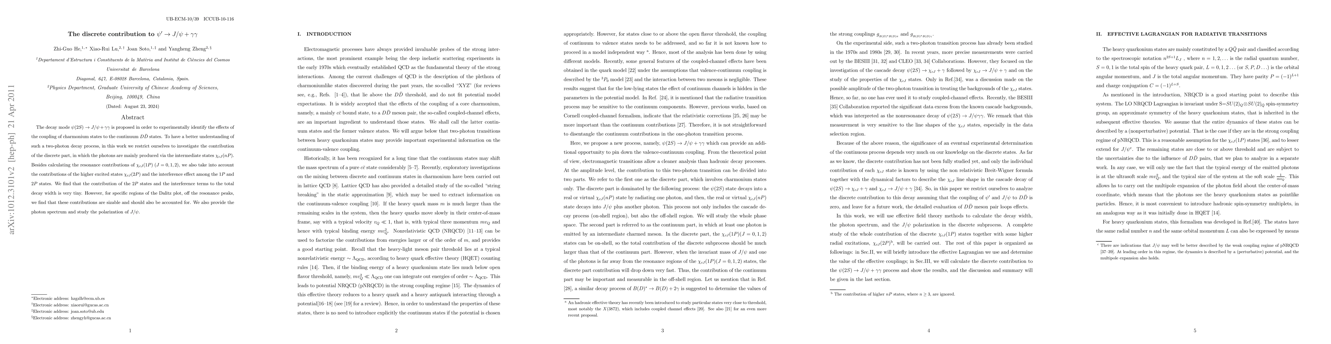 This paper investigates the discrete contribution to the decay $\psi(2S)\to J/\psi+\gamma\gamma$, focusing on intermediate states $\chi_{cJ}(nP)$. It finds that while higher excited states and interference effects have minimal impact on the total decay width, they significantly affect specific regions of the Dalitz plot.