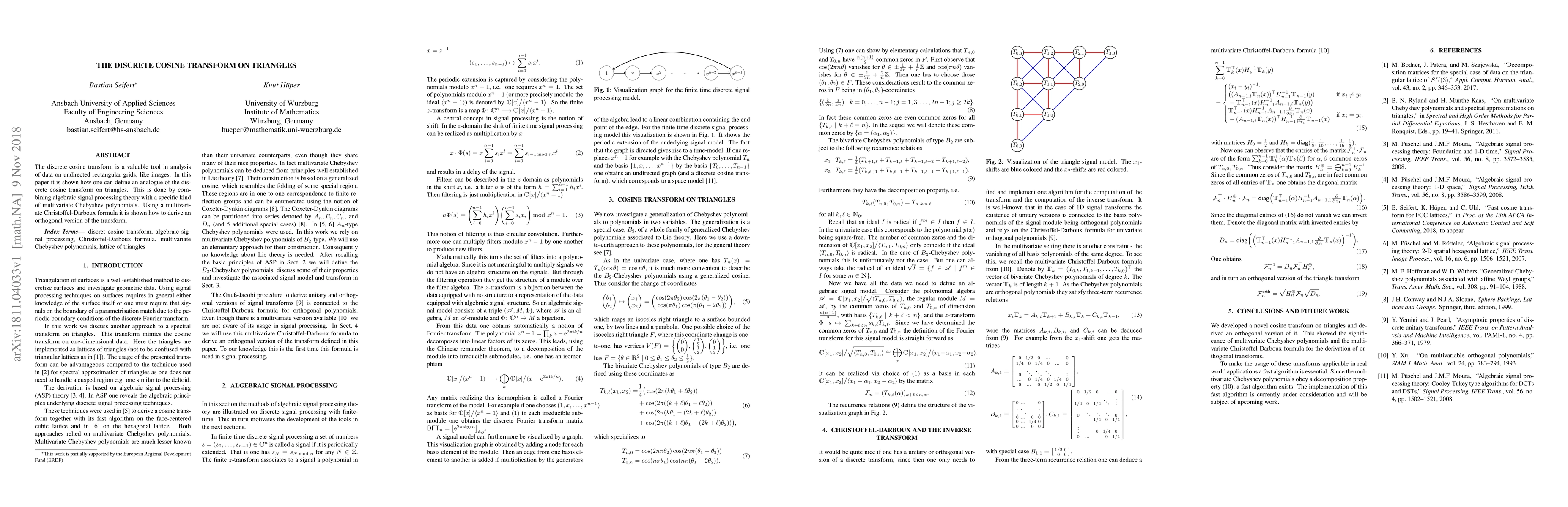 This paper develops an analogue of the discrete cosine transform (DCT) for triangular domains by integrating algebraic signal processing with multivariate Chebyshev polynomials, and utilizes a multivariate Christoffel-Darboux formula to derive an orthogonal version of the transform.