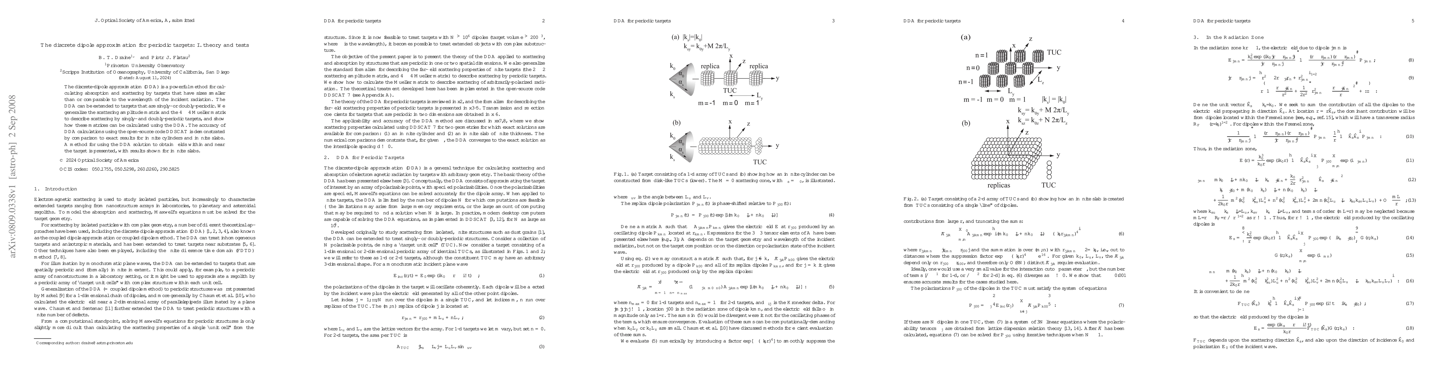 The discrete-dipole approximation (DDA) is extended to calculate scattering by singly- and doubly-periodic targets, with demonstrated accuracy through comparison to exact results for infinite cylinders and slabs.