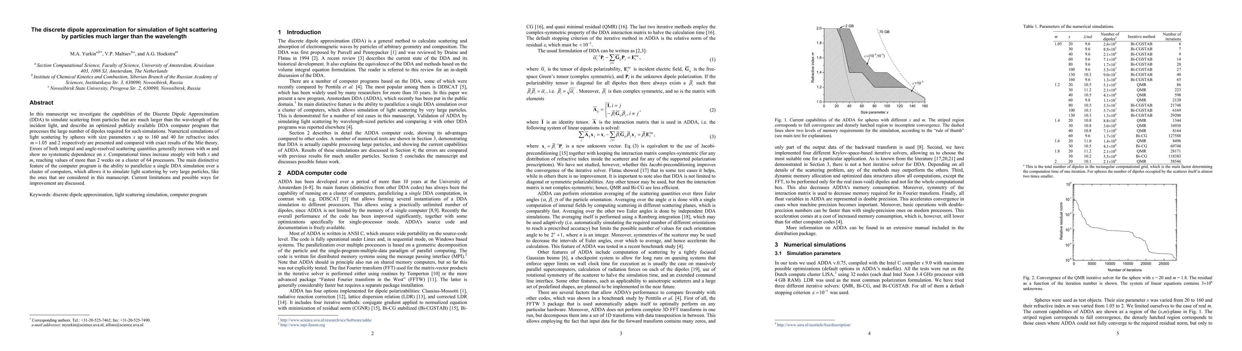 Researchers used the Discrete Dipole Approximation to simulate light scattering from large particles, finding that errors increased with refractive index but not particle size, and highlighting a key feature of their publicly available computer program's ability to parallelize simulations on multiple computers.