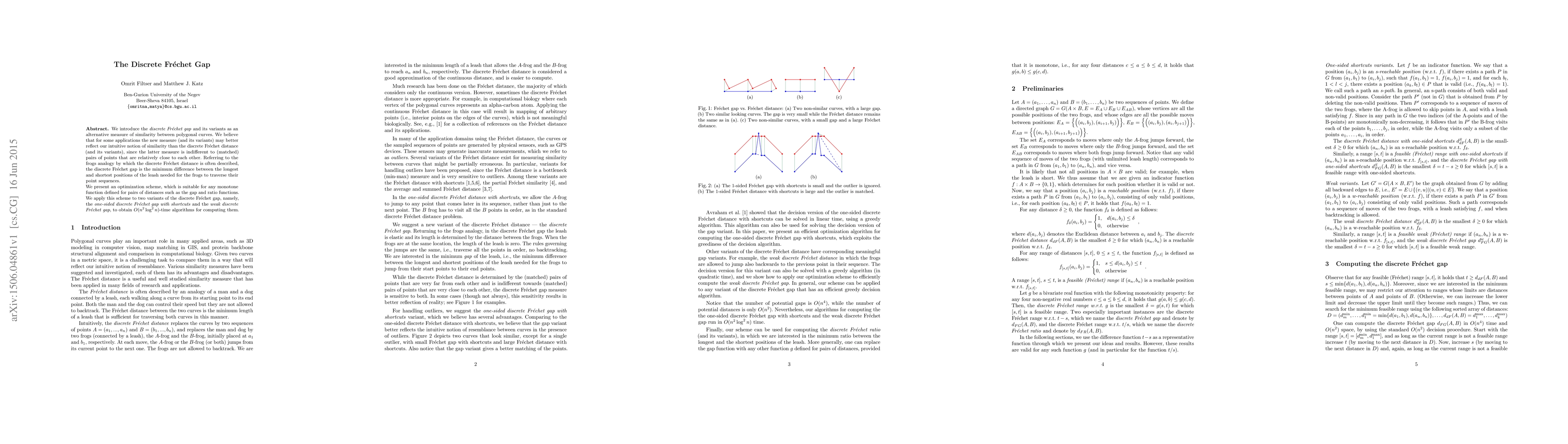The paper introduces the discrete Fréchet gap as a new similarity measure for polygonal curves, emphasizing its potential to better reflect intuitive notions of similarity compared to the discrete Fréchet distance. It also presents an optimization scheme for computing two variants of the gap, achieving $O(n^2 \log^2 n)$-time algorithms.