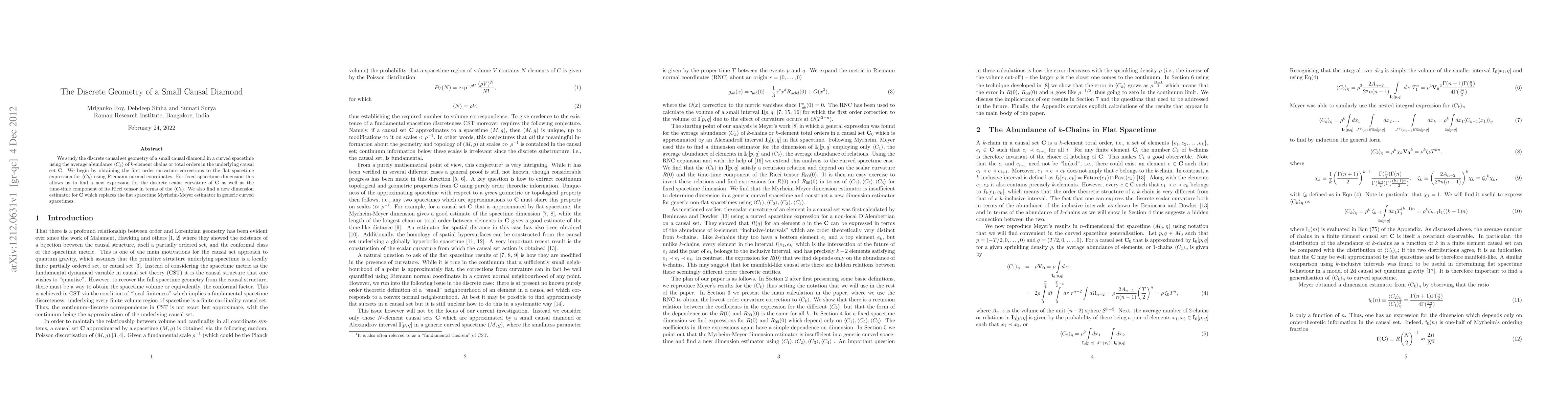 This paper investigates the causal geometry of small causal diamonds in curved spacetimes using causal set theory, deriving first-order curvature corrections to flat spacetime abundances and introducing new expressions for the discrete scalar curvature and Ricci tensor, along with a new dimension estimator for curved spacetimes.