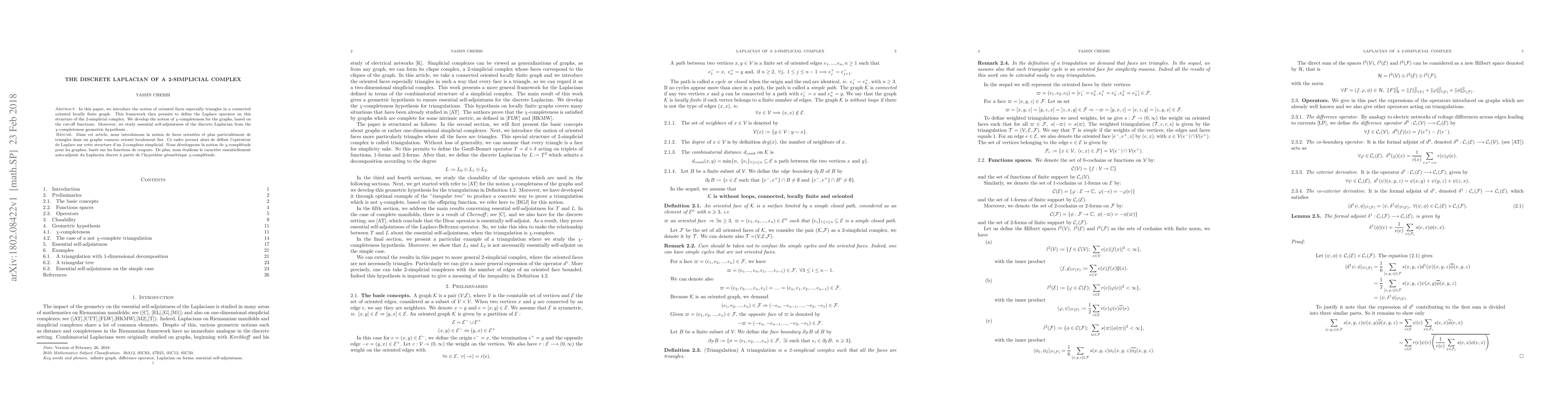 This paper introduces a new framework for defining the Laplace operator on 2-simplicial complexes, exploring its $ heta$-completeness and implications for essential self-adjointness.