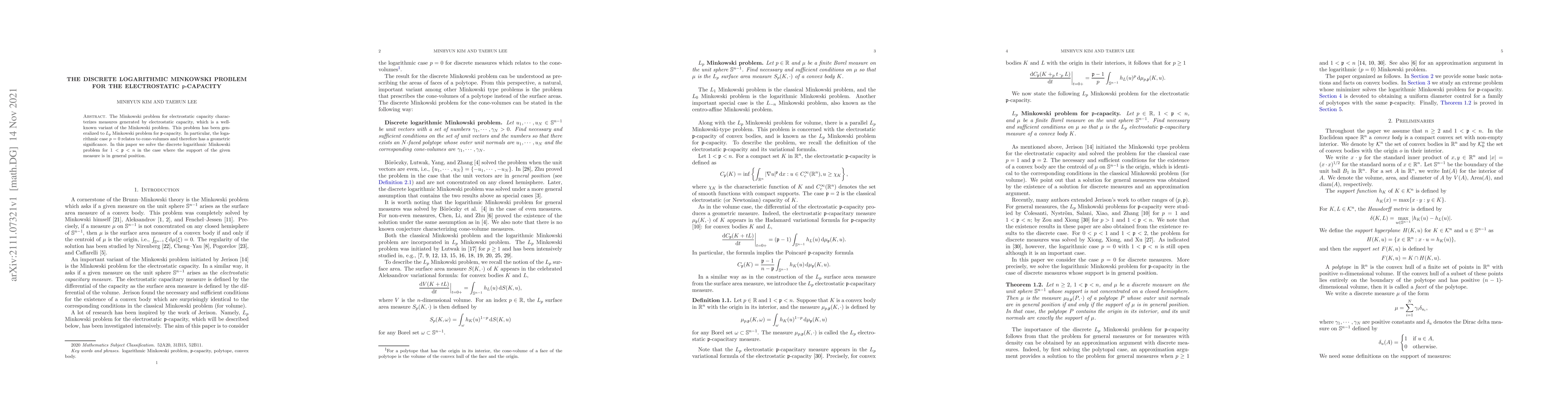 Minkowski problem. This problem has been generalized to $L_p$ Minkowski problem