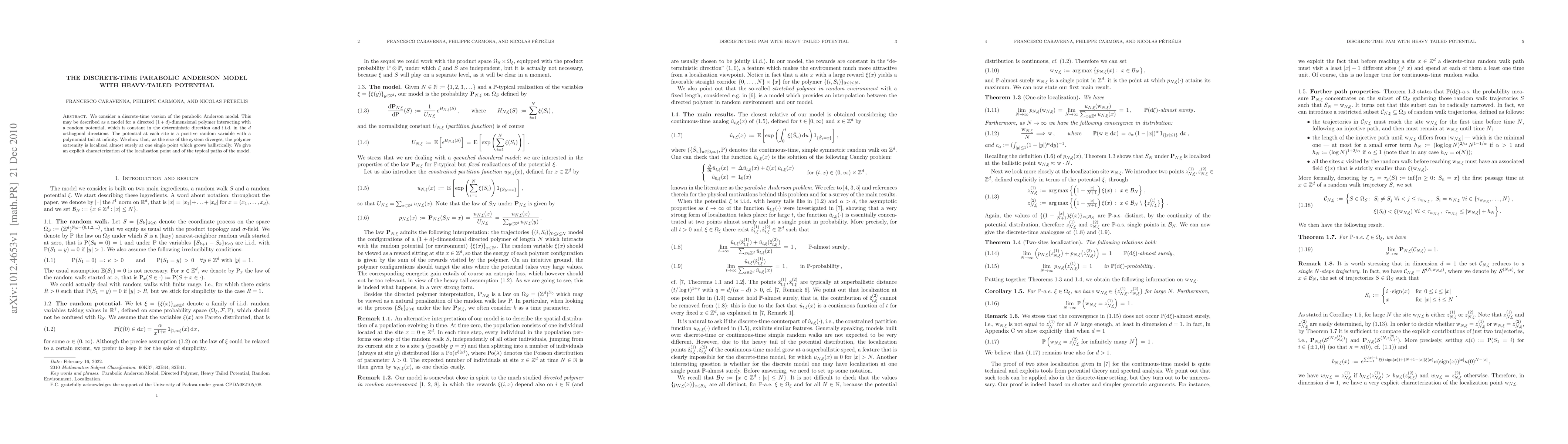 We consider a discrete-time version of the parabolic Anderson model. This may be described as a model for a directed (1+d)-dimensional polymer interacting with a random potential, which is constant in the deterministic direction and i.i.d. in the d orthogonal directions. The potential at each site is a positive random variable with a polynomial tail at infinity. We show that, as the size of the system diverges, the polymer extremity is localized almost surely at one single point which grows ballistically. We give an explicit characterization of the localization point and of the typical paths of the model.
