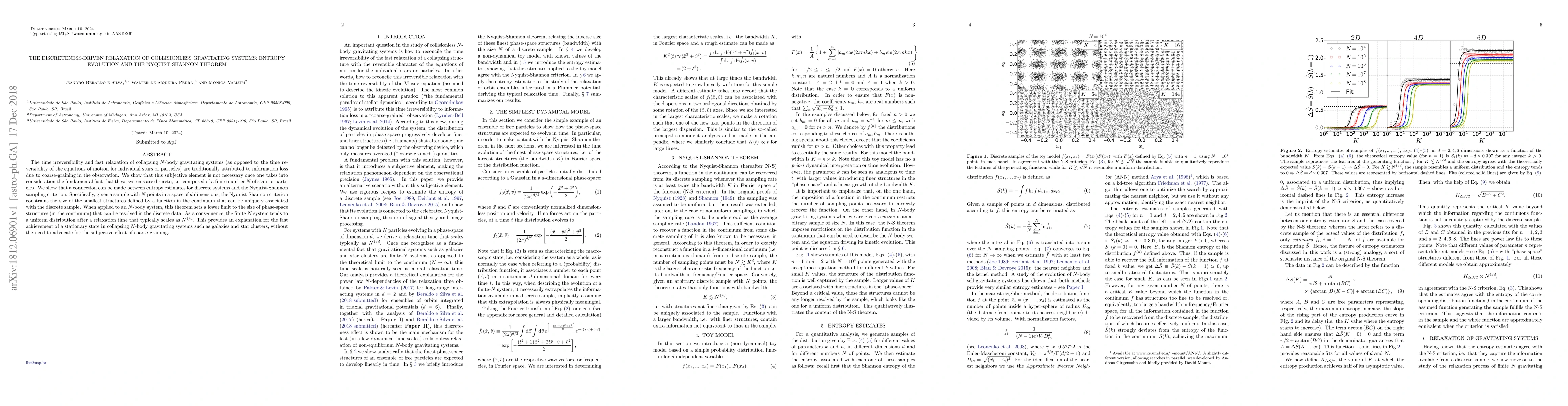 This paper demonstrates that the relaxation and entropy evolution in discrete, finite $N$-body gravitating systems can be explained by the Nyquist-Shannon sampling theorem, without invoking information loss due to coarse-graining. The theorem sets a lower limit on resolvable phase-space structures, leading to a relaxation time scaling as $N^{1/d}$.