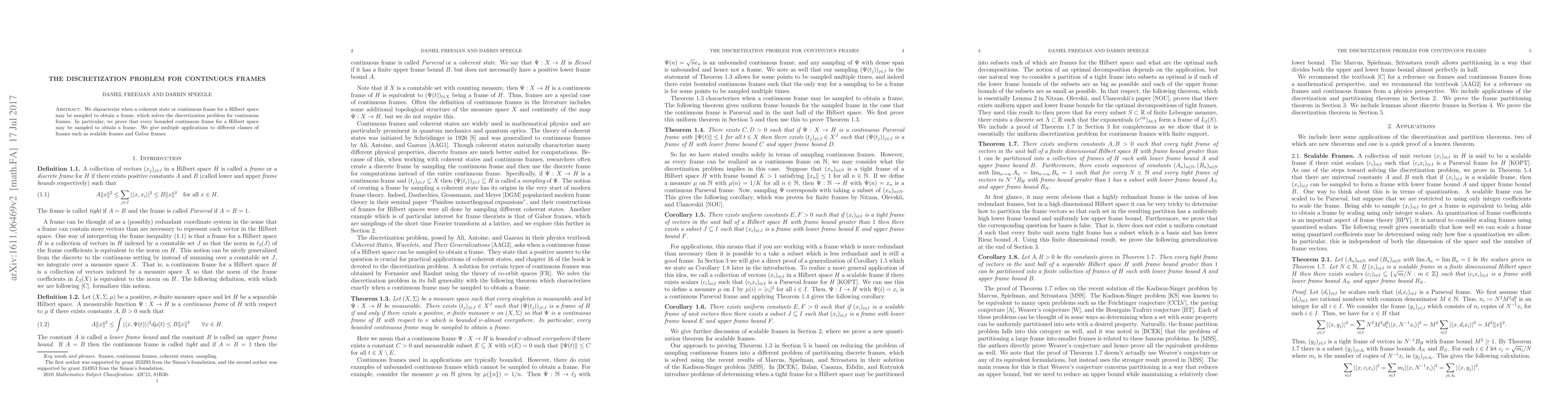 Summary: This paper explores the conditions under which a continuous frame for a Hilbert space can be discretized to form a new frame, proving that any bounded continuous frame can indeed be sampled to achieve this discretization.