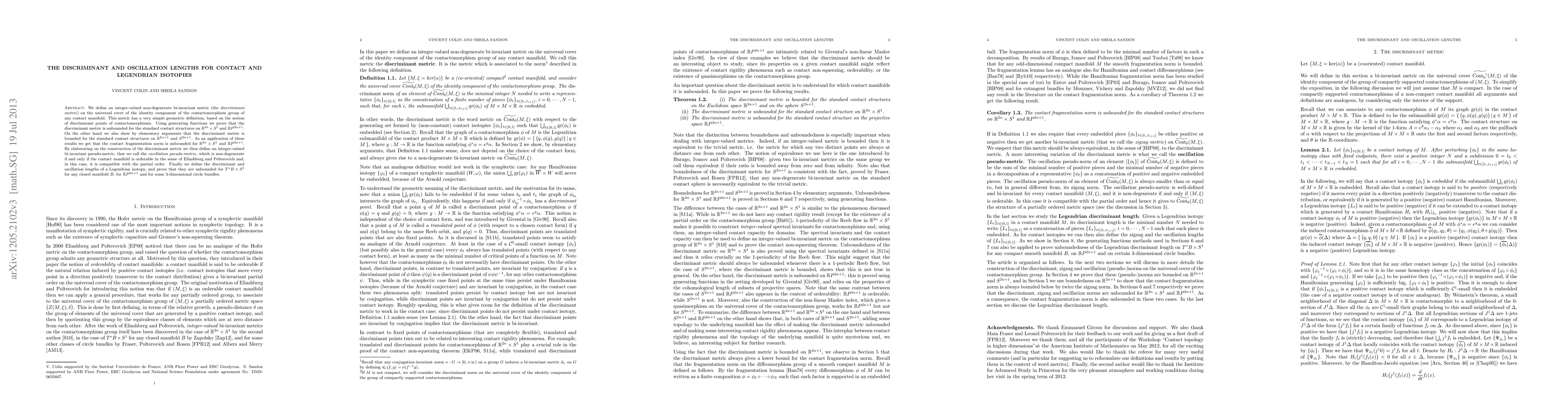 This research introduces a discriminant metric for contact manifolds, proving it's unbounded for certain structures (R^{2n} x S^1, RP^{2n+1}) but bounded for others (R^{2n+1}, S^{2n+1}). It also presents an oscillation metric linked to manifold orderability, defining discriminant and oscillation lengths for Legendrian isotopies. These lengths are shown to be unbounded for specific cases including T*B x S^1, RP^{2n+1}, and some 3-dimensional circle bundles.