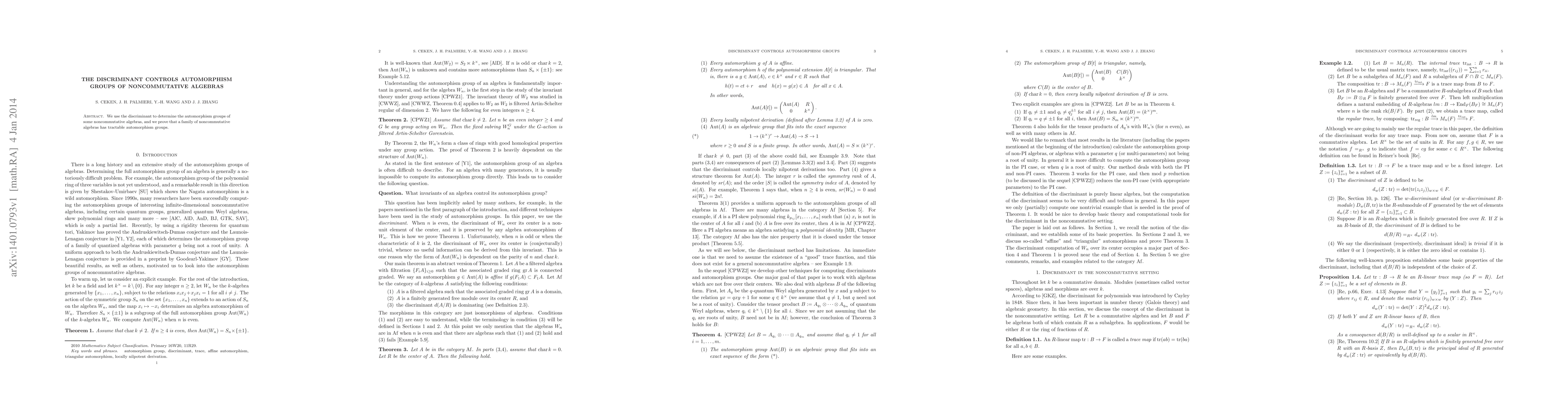 Summary: The research utilizes the discriminant to identify the automorphism groups of specific noncommutative algebras, demonstrating that a particular family of these algebras exhibits manageable automorphism group structures.