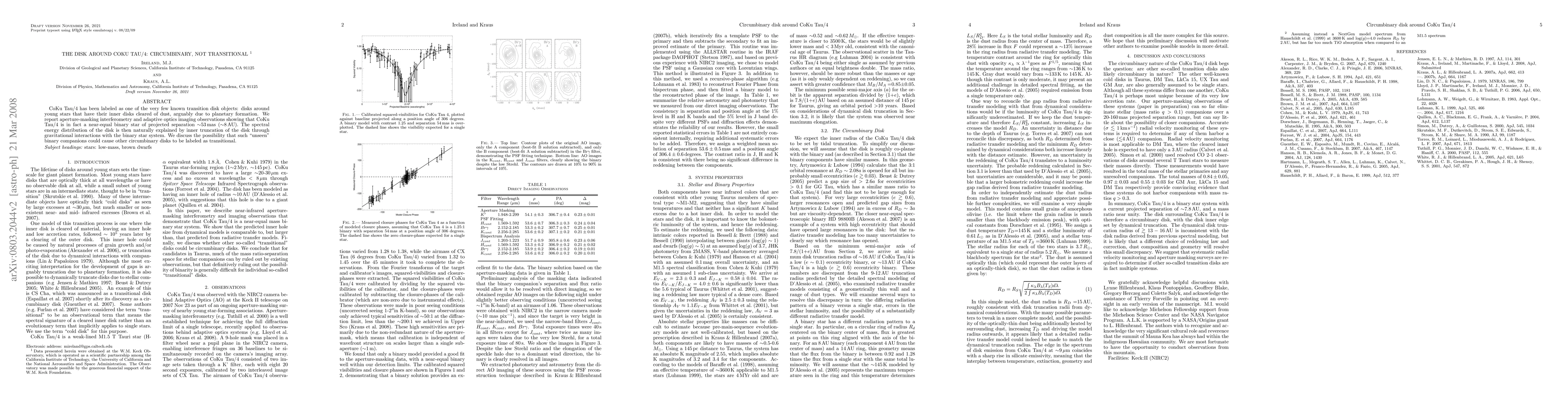 This paper reveals that CoKu Tau/4, previously thought to be a transition disk, is actually a near-equal binary star system. Observations show that the disk's inner truncation is due to gravitational interactions with the binary, suggesting other circumbinary disks might be misclassified as transitional.