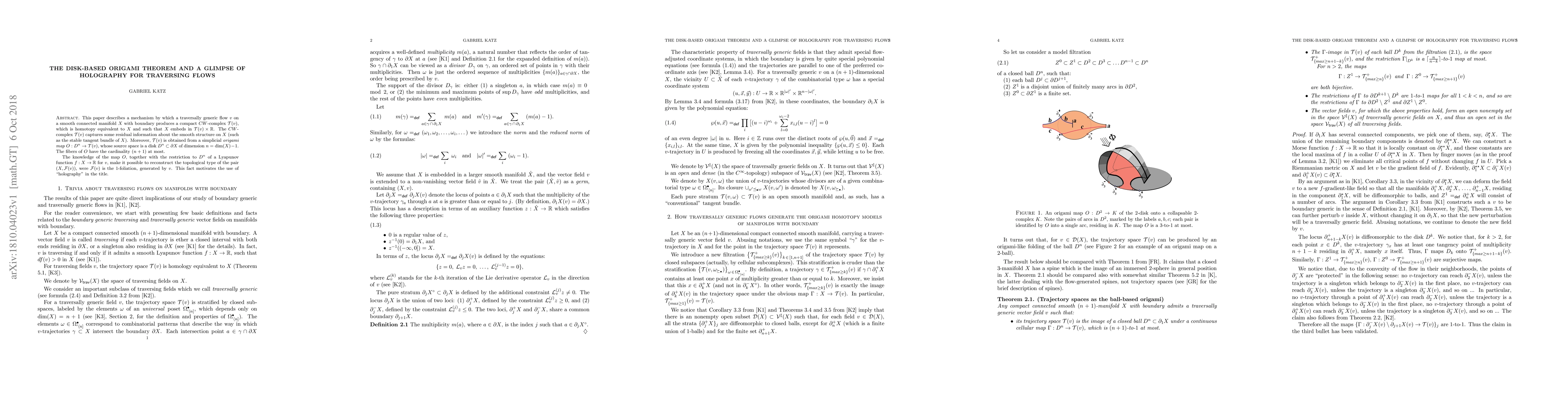 This paper describes a mechanism by which a traversally generic flow $v$ on a smooth connected manifold $X$ with boundary produces a compact $CW$-complex $\mathcal T(v)$, which is homotopy equivalent to $X$ and such that $X$ embeds in $\mathcal T(v)\times \mathbf R$. The $CW$-complex $\mathcal T(v)$ captures some residual information about the smooth structure on $X$ (such as the stable tangent bundle of $X$). Moreover, $\mathcal T(v)$ is obtained from a simplicial \emph{origami map} $O: D^n \to \mathcal T(v)$, whose source space is a disk $D^n \subset \partial X$ of dimension $n = \dim(X) -1$. The fibers of $O$ have the cardinality $(n+1)$ at most. The knowledge of the map $O$, together with the restriction to $D^n$ of a Lyapunov function $f:X \to \mathbf R$ for $v$, make it possible to reconstruct the topological type of the pair $(X, \mathcal F(v))$, were $\mathcal F(v)$ is the $1$-foliation, generated by $v$. This fact motivates the use of "holography" in the title.