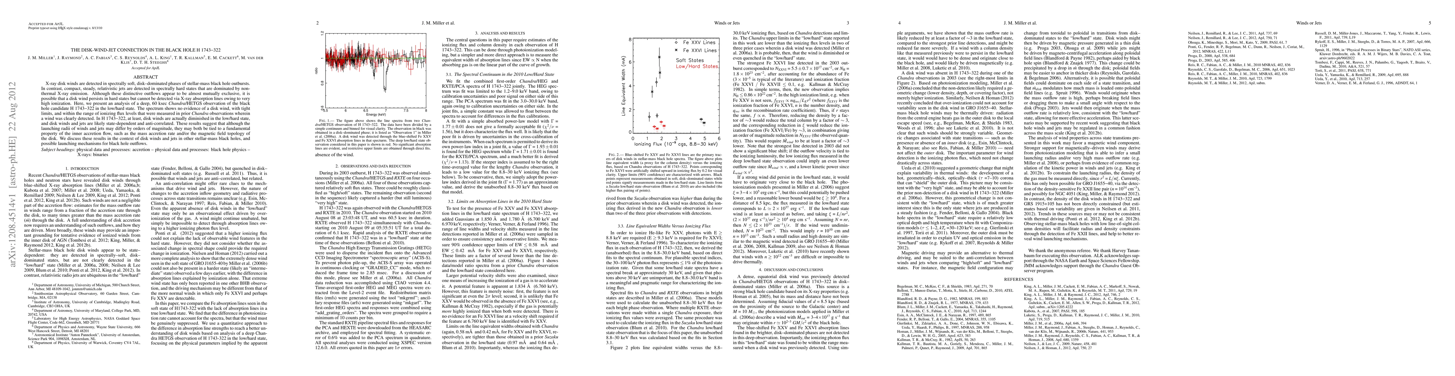 X-ray disk winds are detected in spectrally soft, disk-dominated phases of stellar-mass black hole outbursts. In contrast, compact, steady, relativistic jets are detected in spectrally hard states that are dominated by non-thermal X-ray emission. Although these distinctive outflows appear to be almost mutually exclusive, it is possible that a disk wind persists in hard states but cannot be detected via X-ray absorption lines owing to very high ionization. Here, we present an analysis of a deep, 60 ksec Chandra/HETGS observation of the black hole candidate H 1743-322 in the low/hard state. The spectrum shows no evidence of a disk wind, with tight limits, and within the range of ionizing flux levels that were measured in prior Chandra observations wherein a wind was clearly detected. In H 1743-322, at least, disk winds are actually diminished in the low/hard state, and disk winds and jets are likely state-dependent and anti-correlated. These results suggest that although the launching radii of winds and jets may differ by orders of magnitude, they may both be tied to a fundamental property of the inner accretion flow, such as the mass accretion rate and/or the magnetic field topology of the disk. We discuss these results in the context of disk winds and jets in other stellar-mass black holes, and possible launching mechanisms for black hole outflows.