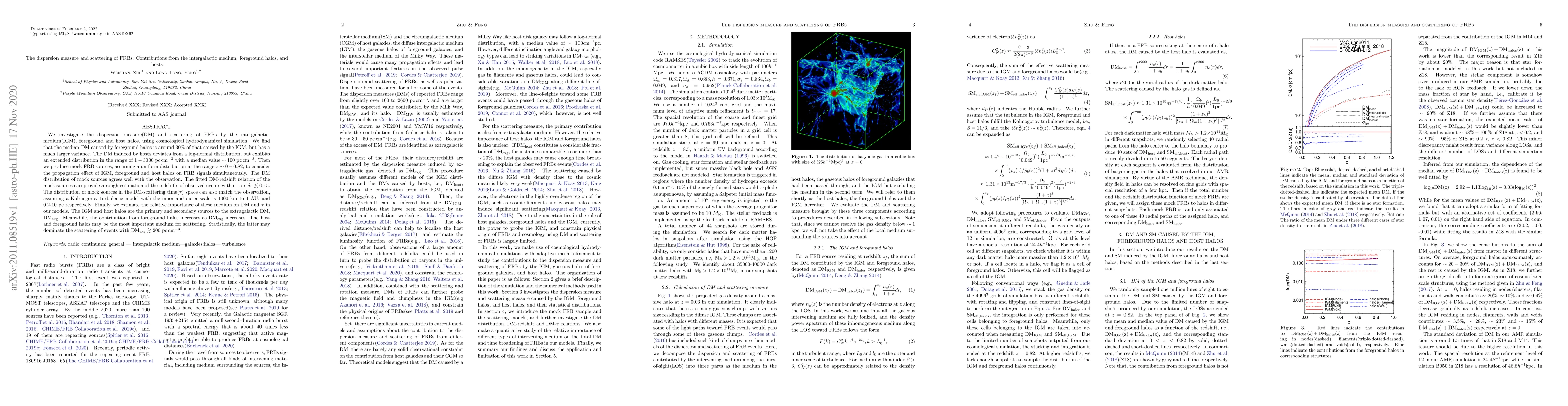 We investigate the dispersion measure(DM) and scattering of FRBs by the intergalactic-medium(IGM), foreground and host halos, using cosmological hydrodynamical simulation. We find that the median DM caused by foreground halos is around 30\% of that caused by the IGM, but has a much larger variance. The DM induced by hosts deviates from a log-normal distribution, but exhibits an extended distribution in the range of $1-3000 \ {\rm{pc\, cm^{-3}}}$ with a median value $\sim 100 \ {\rm{pc\, cm^{-3}}}$. Then we produce mock FRB sources, assuming a uniform distribution in the range $z\sim 0-0.82$, to consider the propagation effect of IGM, foreground and host halos on FRB signals simultaneously. The DM distribution of mock sources agrees well with the observation. The fitted DM-redshift relation of the mock sources can provide a rough estimation of the redshifts of observed events with errors $\delta z \lesssim 0.15$. The distribution of mock sources in the DM-scattering time($\tau$) space can also match the observation, assuming a Kolmogorov turbulence model with the inner and outer scale is 1000 km to 1 AU, and 0.2-10 pc respectively. Finally, we estimate the relative importance of these medium on DM and $\tau$ in our models. The IGM and host halos are the primary and secondary sources to the extragalactic DM, $\rm{DM_{exg}}$. Meanwhile, the contribution from foreground halos increases as $\rm{DM_{exg}}$ increases. The host and foreground halos may be the most important medium for scattering. Statistically, the latter may dominate the scattering of events with $\rm{DM_{exg}} \gtrsim 200 \ {\rm{pc\, cm^{-3}}}$.