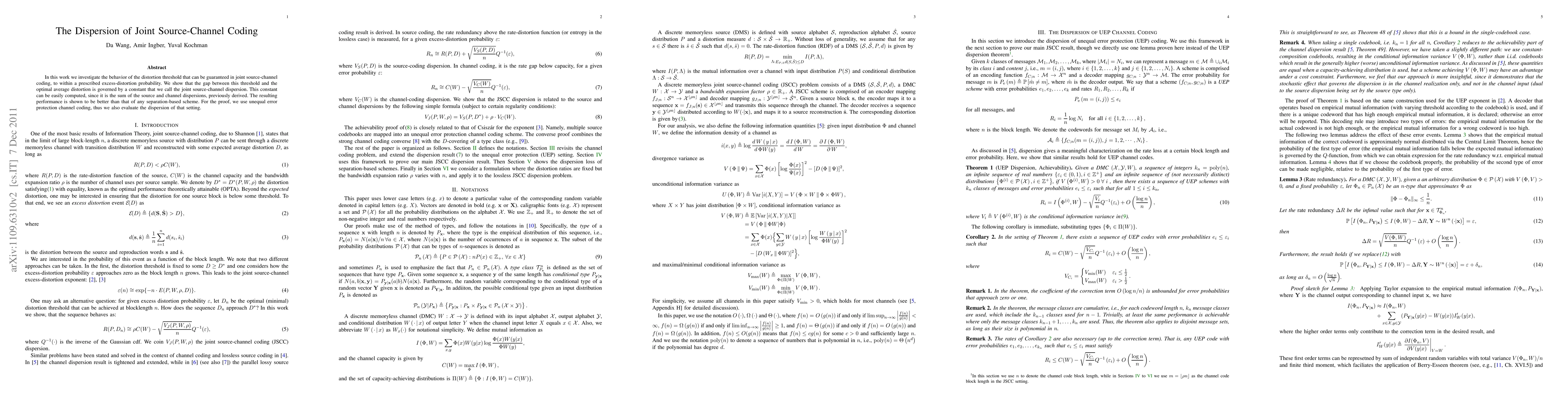 This paper investigates the dispersion in joint source-channel coding, introducing a new constant called joint source-channel dispersion that governs the gap between guaranteed distortion thresholds and optimal average distortion. The study demonstrates superior performance compared to separation-based schemes using unequal error protection channel coding.