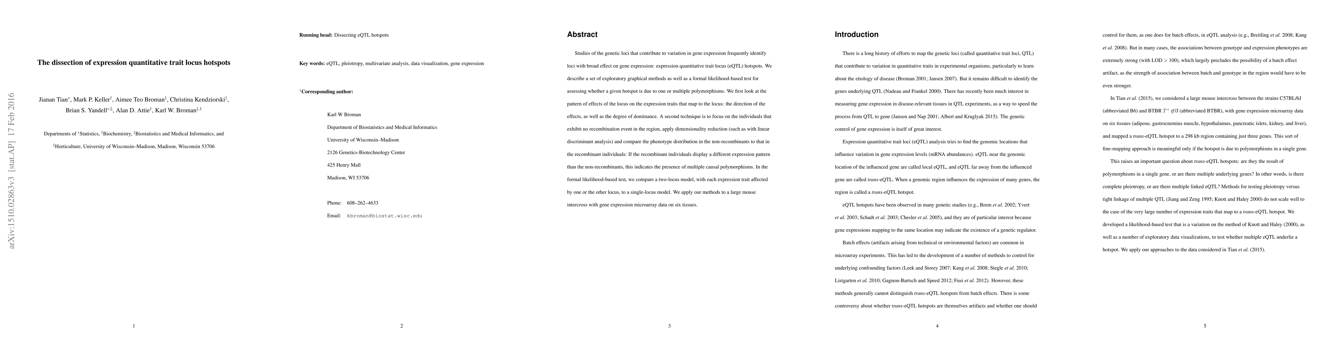 This paper introduces graphical methods and a likelihood-based test to determine if expression quantitative trait locus (eQTL) hotspots are caused by one or multiple polymorphisms. The methods assess the pattern of effects on gene expression and compare phenotype distributions between recombinant and non-recombinant individuals.