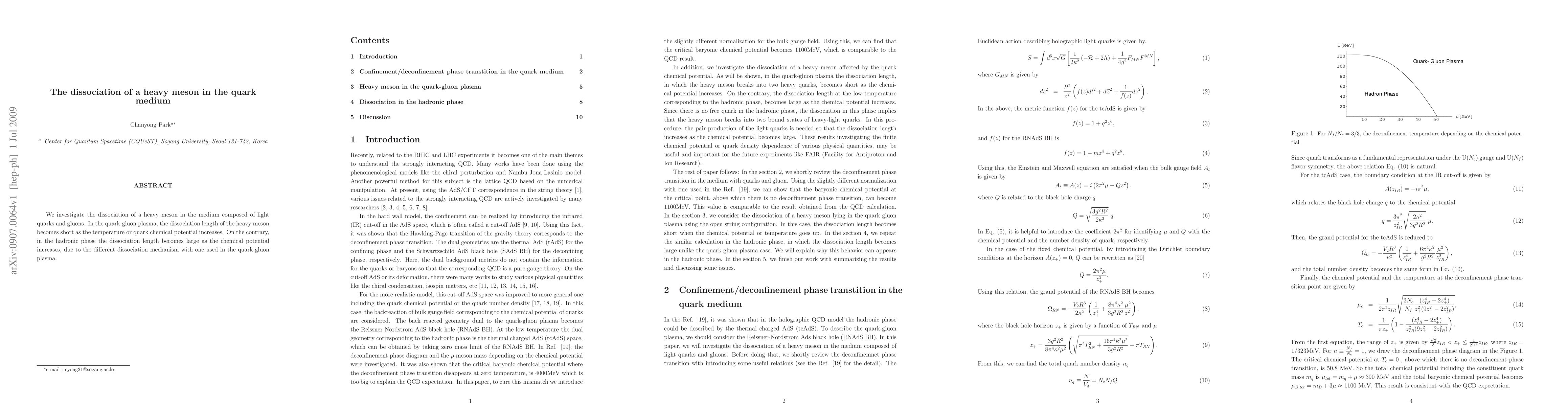 We investigate the dissociation of a heavy meson in the medium composed of light quarks and gluons. In the quark-gluon plasma, the dissociation length of the heavy meson becomes short as the temperature or quark chemical potential increases. On the contrary, in the hadronic phase the dissociation length becomes large as the chemical potential increases, due to the different dissociation mechanism with one used in the quark-gluon plasma.