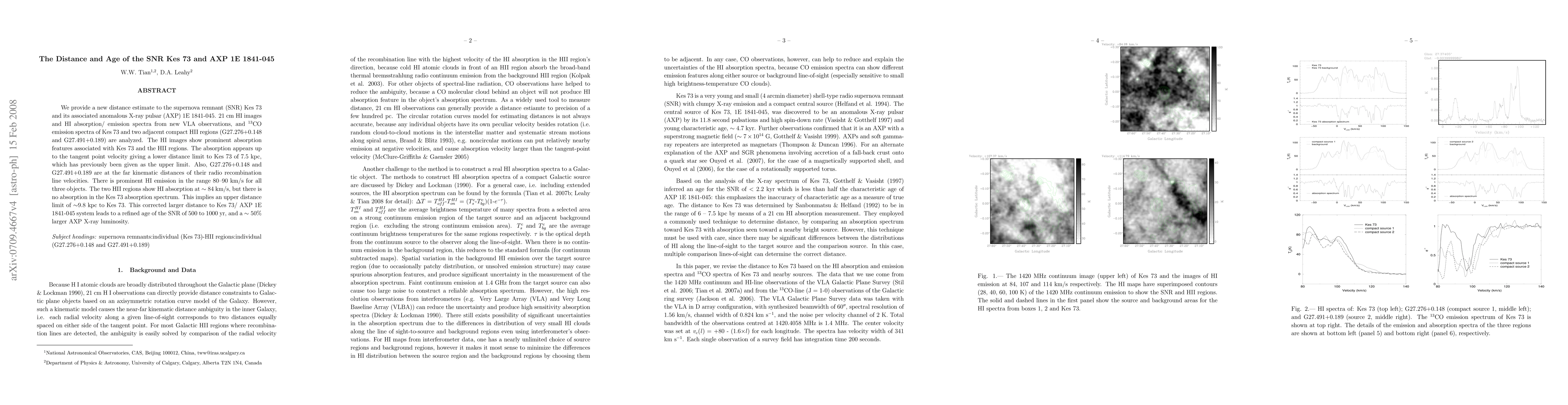 We provide a new distance estimate to the supernova remnant (SNR) Kes 73 and its associated anomalous X-ray pulsar (AXP) 1E 1841-045. 21 cm HI images and HI absorption/ emission spectra from new VLA observations, and 13CO emission spectra of Kes 73 and two adjacent compact HII regions (G27.276+0.148 and G27.491+0.189) are analyzed. The HI images show prominent absorption features associated with Kes 73 and the HII regions. The absorption appears up to the tangent point velocity giving a lower distance limit to Kes 73 of 7.5 kpc, which has previously been given as the upper limit. Also, G27.276+0.148 and G27.491+0.189 are at the far kinematic distances of their radio recombination line velocities. There is prominent HI emission in the range 80--90 km/s for all three objects. The two HII regions show HI absorption at ~ 84 km/s, but there is no absorption in the Kes 73 absorption spectrum. This implies an upper distance limit of ~ 9.8 kpc to Kes 73. This corrected larger distance to Kes 73/ AXP 1E 1841-045 system leads to a refined age of the SNR of 500 to 1000 yr, and a ~ 50% larger AXP X-ray luminosity.