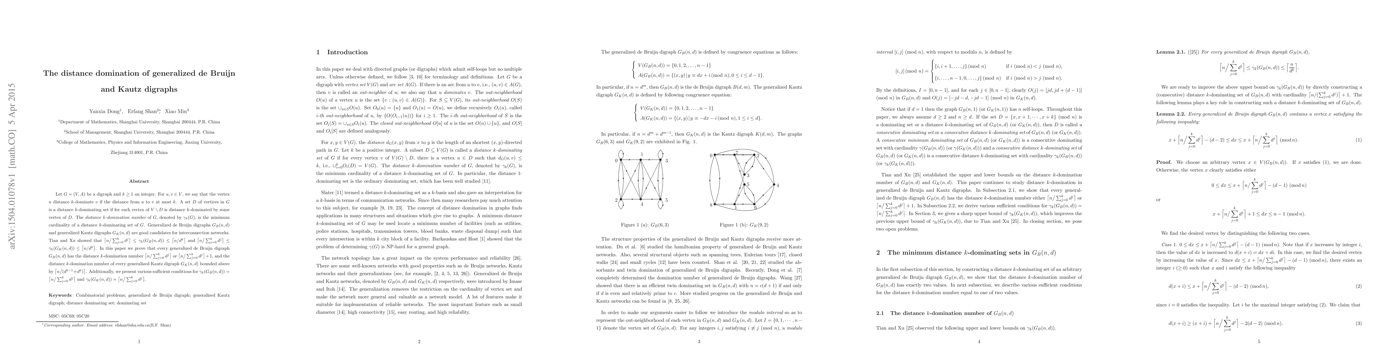 Let $G=(V,A)$ be a digraph and $k\ge 1$ an integer. For $u,v\in V$, we say that the vertex $u$ distance $k$-dominate $v$ if the distance from $u$ to $v$ at most $k$. A set $D$ of vertices in $G$ is a distance $k$-dominating set if for each vertex of $V\setminus D$ is distance $k$-dominated by some vertex of $D$. The {\em distance $k$-domination number} of $G$, denoted by $\gamma_{k}(G)$, is the minimum cardinality of a distance $k$-dominating set of $G$. Generalized de Bruijn digraphs $G_B(n,d)$ and generalized Kautz digraphs $G_K(n,d)$ are good candidates for interconnection networks. Tian and Xu showed that $\big \lceil n\big/\sum_{j=0}^kd^j\big\rceil\le \gamma_{k}(G_B(n,d))\le \big\lceil n/d^{k}\big\rceil$ and $\big \lceil n \big/\sum_{j=0}^kd^j\big\rceil\le \gamma_{k}(G_K(n,d))\le \big\lceil n/d^{k}\big\rceil$. In this paper we prove that every generalized de Bruijn digraph $G_B(n,d)$ has the distance $k$-domination number $\big\lceil n\big/\sum_{j=0}^kd^j\big\rceil$ or $\big\lceil n\big/\sum_{j=0}^kd^j\big\rceil+1$, and the distance $k$-domination number of every generalized Kautz digraph $G_K(n,d)$ bounded above by $\big\lceil n\big/(d^{k-1}+d^{k})\big\rceil$. Additionally, we present various sufficient conditions for $\gamma_{k}(G_B(n,d))=\big\lceil n\big/\sum_{j=0}^kd^j\big\rceil$ and $\gamma_{k}(G_K(n,d))=\big\lceil n\big/\sum_{j=0}^kd^j\big\rceil$.