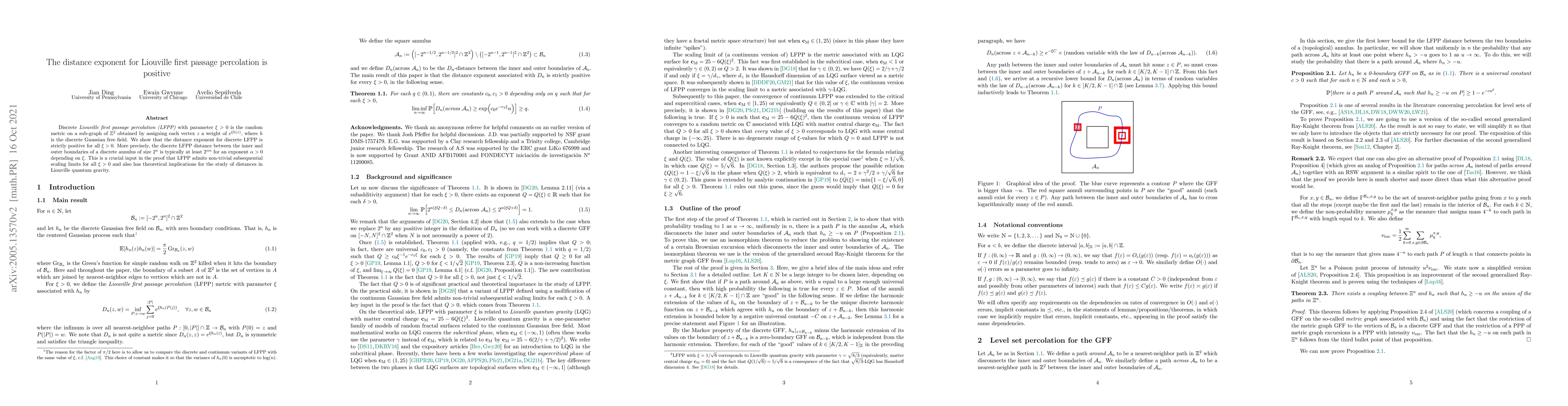 The research demonstrates that the distance exponent for discrete Liouville first passage percolation is strictly positive for all positive parameters, indicating non-trivial scaling limits. This finding has implications for the study of distances in Liouville quantum gravity.