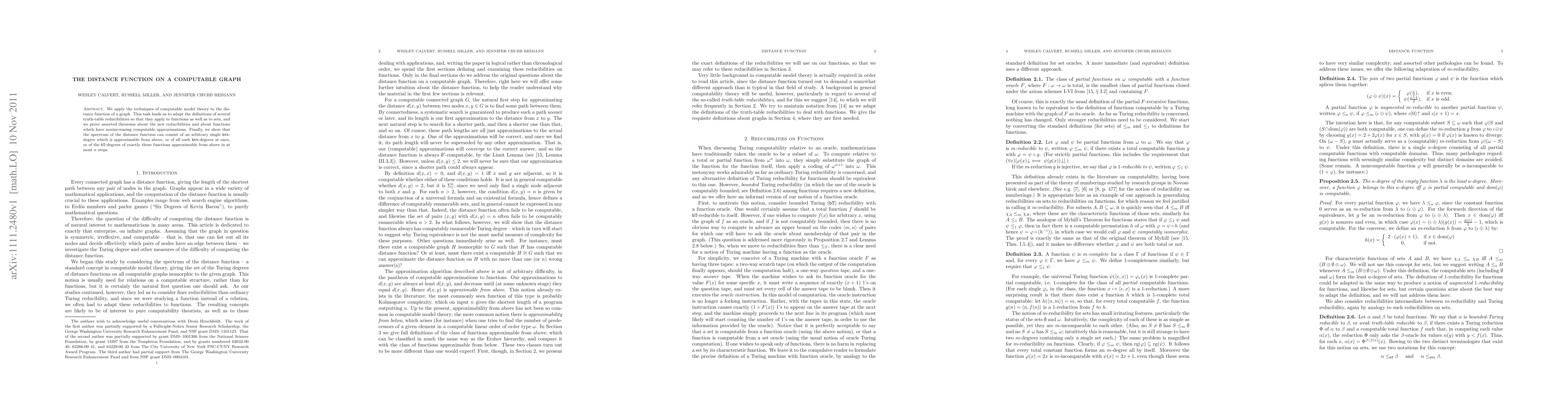 Researchers applied computable model theory to the distance function on a graph, discovering that its spectrum can consist of various levels of complexity in terms of truth-table reducibility.