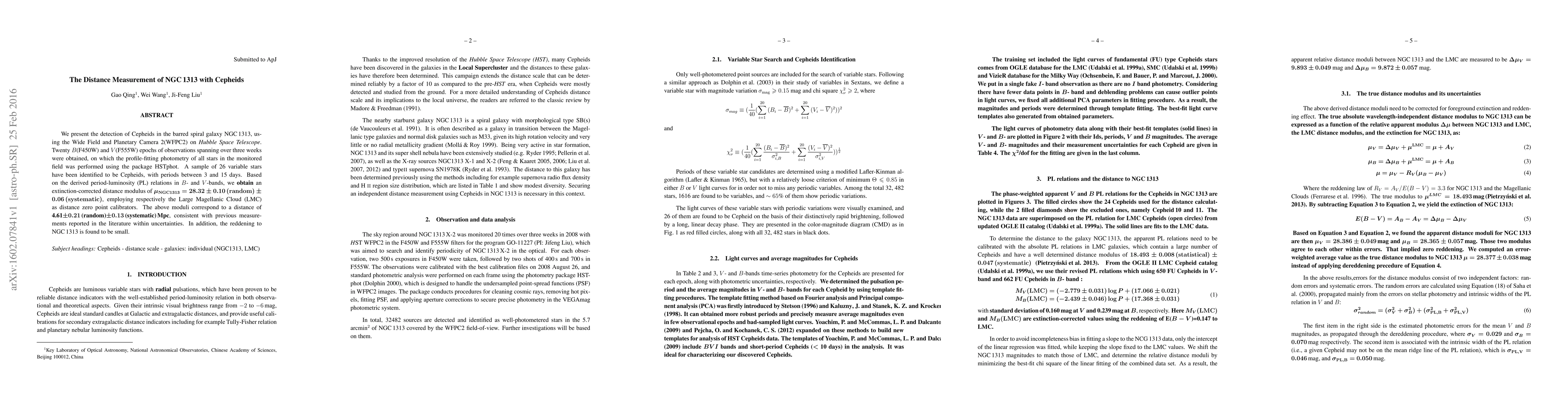 We present the detection of Cepheids in the barred spiral galaxy NGC 1313, using the Wide Field and Planetary Camera 2 on the Hubble Space Telescpoe. Twenty B (F450W) and V (F555W) epochs of observations spanning over three weeks were obtained, on which the profile-fitting photometry of all stars in the monitored field was performed using the package HSTphot. A sample of 26 variable stars have been identified to be Cepheids, with periods between 3 and 14 days. Based on the derived period-luminosity relations in B and V bands, we obtain an extinction-corrected distance modulus of mu = 28.32 +- 0.08 (random) +- 0.06 (systematic), employing the Large Magellanic Cloud as the distance zero point calibrator. The above moduli correspond to a distance of 4.61 +- 0.17 (random) +- 0.13 (systematic) Mpc, consistent with previous measurements reported in the literature with uncertainties. In addition, the reddening to NGC 1313 is found to be small.