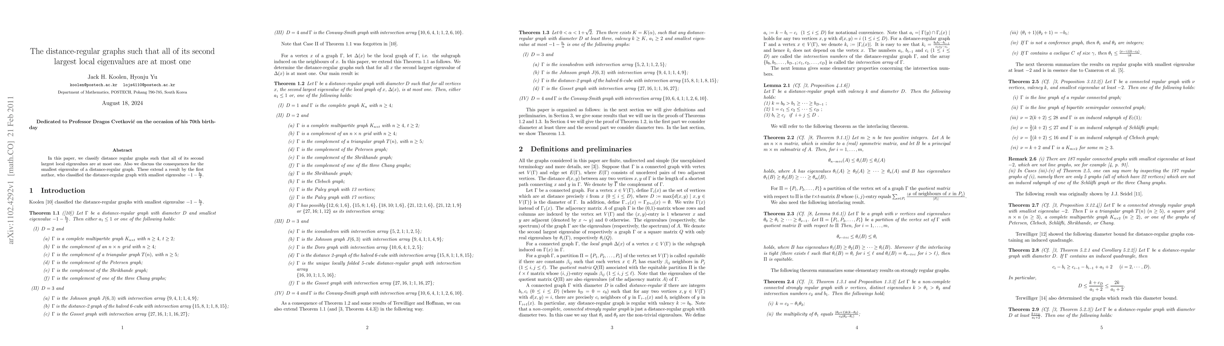 This paper classifies distance-regular graphs where the second largest local eigenvalues are ≤ 1, extending previous work, and discusses implications for the smallest eigenvalue of such graphs.