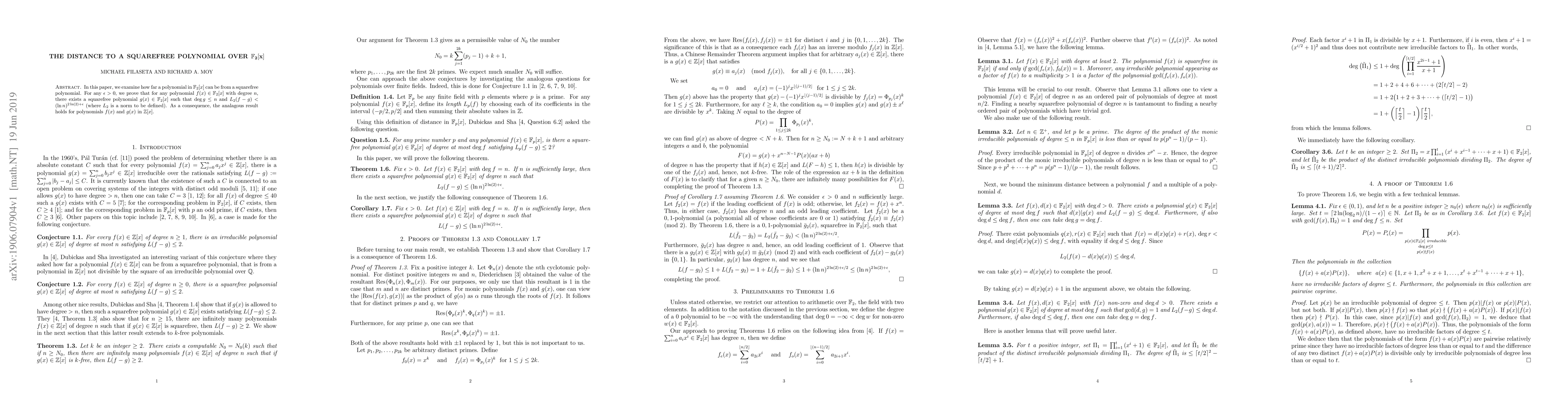 This paper proves that any polynomial in $\mathbb{F}_2[x]$ can be approximated by a squarefree polynomial within a distance bound of $(\ln n)^{2\ln(2)+\epsilon}$, where $n$ is the degree of the polynomial. The result extends to polynomials in $\mathbb{Z}[x]$.
