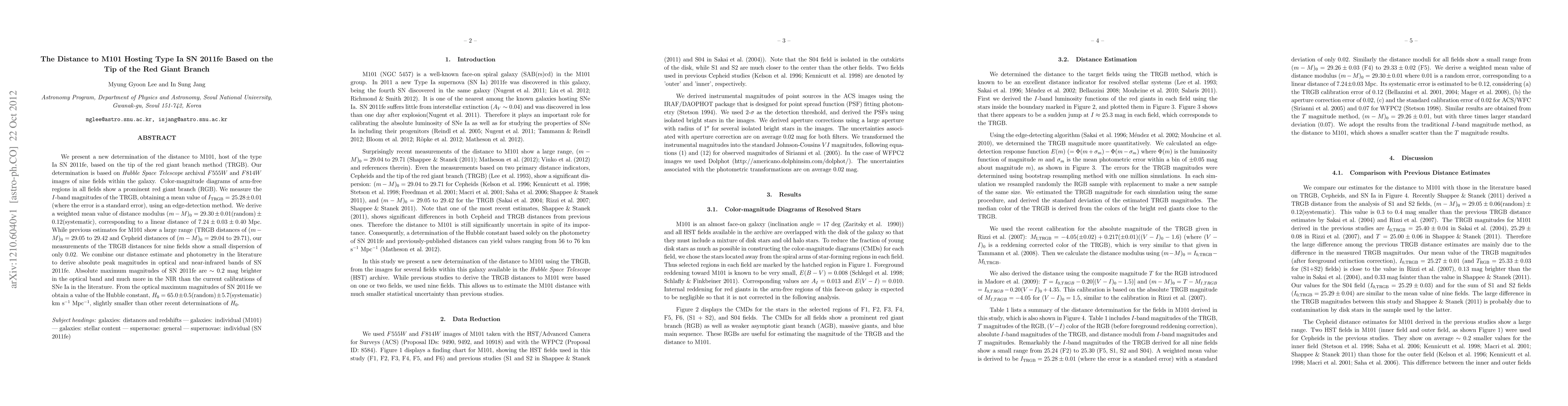 This study presents a precise distance measurement to the galaxy M101, host of SN 2011fe, using the Type Ia supernova SN 2011fe and the TRGB (Tip of the Red Giant Branch) method. The researchers analyzed Hubble Space Telescope images, identifying the TRGB in nine fields and deriving a distance modulus of (m-M)_0=29.30±0.01. The findings suggest SN 2011fe's absolute peak magnitudes are brighter in both optical and near-infrared bands than current calibrations. This leads to a calculated Hubble constant, H0=65.0±0.5(random)±5.7(systematic) km/s/Mpc, which is slightly lower than recent determinations.