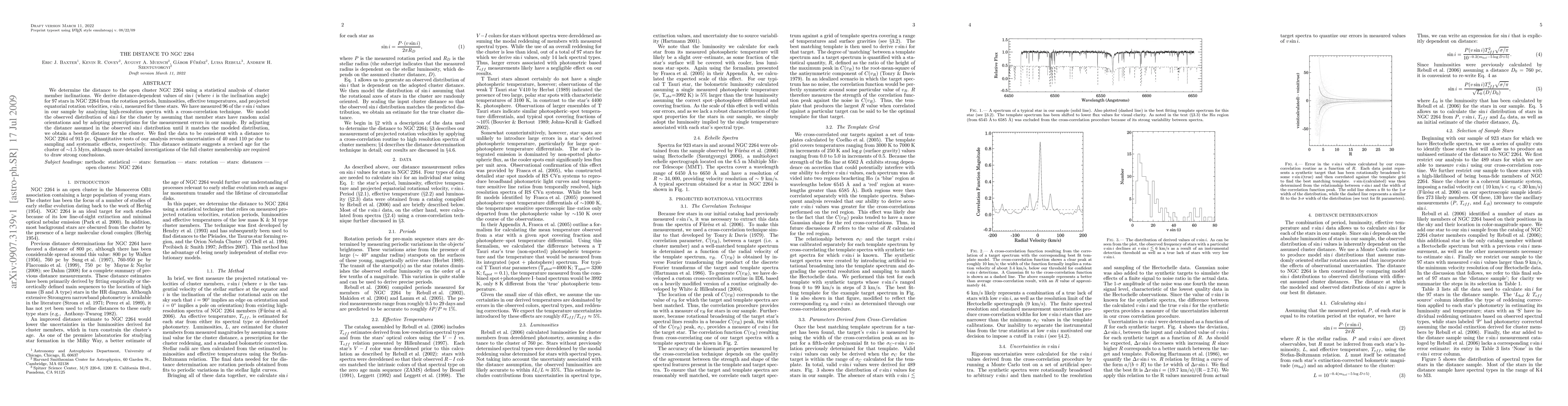 The study determines the distance to NGC 2264 using statistical analysis of member star inclinations, finding a best-fit distance of 913 pc with uncertainties of 40 and 110 pc. This suggests a revised cluster age of 1.5 Myrs, pending further detailed membership investigations.