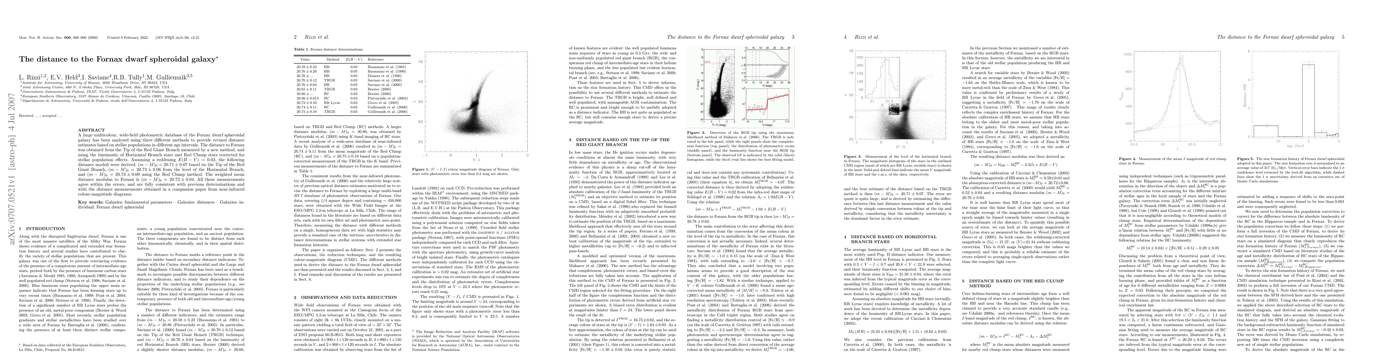 A large multicolour, wide-field photometric database of the Fornax dwarf spheroidal galaxy has been analysed using three different methods to provide revised distance estimates based on stellar populations in different age intervals. The distance to Fornax was obtained from the Tip of the Red Giant Branch measured by a new method, and using the luminosity of Horizontal Branch stars and Red Clump stars correc ted for stellar population effects. Assuming a reddening $E(B-V)=0.02$, the following distance moduli were derived: $(m-M)_0=20.71 \pm 0.07$ based on the Tip of the Red Giant Branch, $(m-M)_0=20.72 \pm 0.06$ from the level of the Horizontal Branch, and $(m-M)_0=20.73 \pm 0.09$ using the Red Clump method. The weighted mean distance modulus to Fornax is $(m-M)_0=20.72 \pm 0.04$. All these measurements agree within the errors, and are fully consistent with previous determinations and with the distance measurements obtained in a companion paper from near-infrared colour-magnitude diagrams.