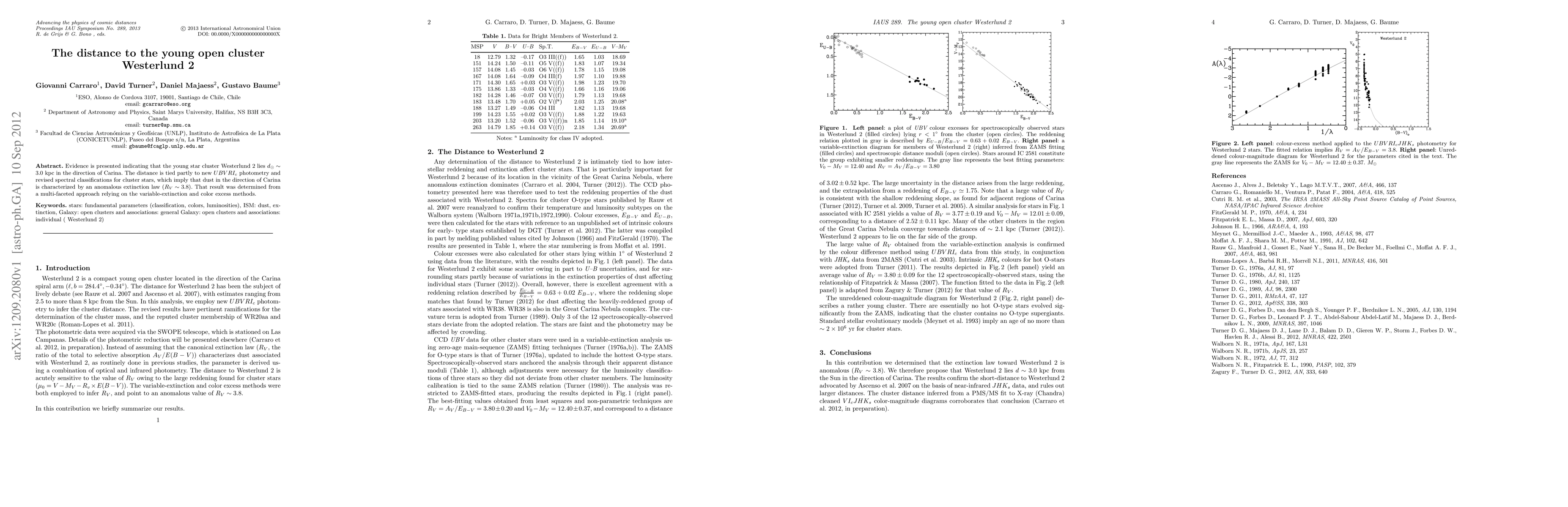 Evidence is presented indicating that the young star cluster Westerlund~2 lies $d_{\odot}\sim3.0$ kpc in the direction of Carina. The distance is tied partly to new $UBVRI_c$ photometry and revised spectral classifications for cluster stars, which imply that dust in the direction of Carina is characterized by an anomalous extinction law ($R_V\sim3.8$). That result was determined from a multi-faceted approach relying on the variable-extinction and color excess methods.