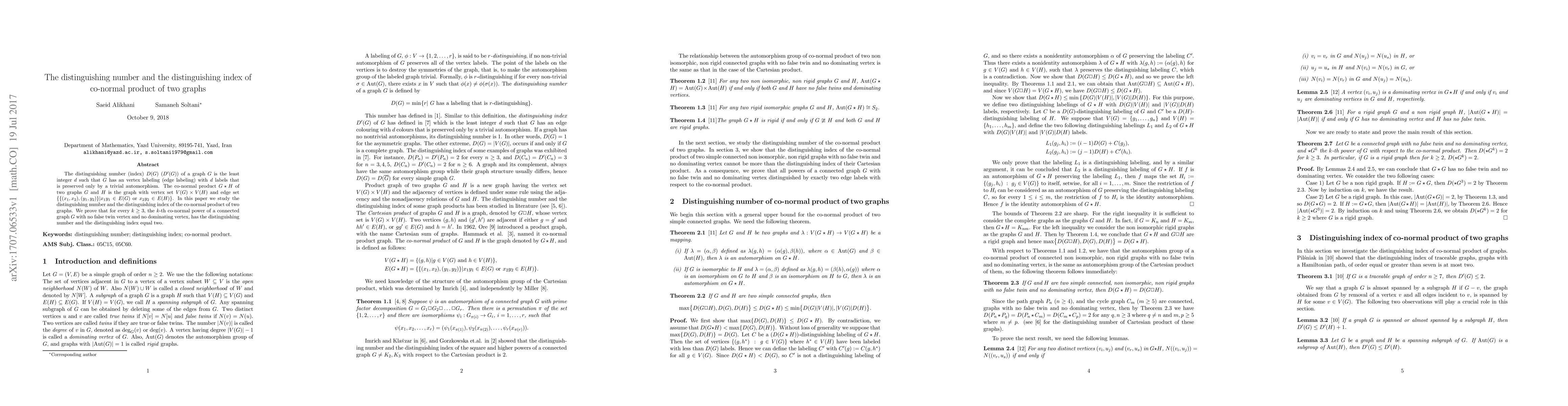 This paper investigates the distinguishing number and index of the co-normal product of two graphs, revealing that for connected graphs with no false twin vertices or dominating vertices, the $k$-th co-normal power has a distinguishing number and index of two for $k \geq 3$.