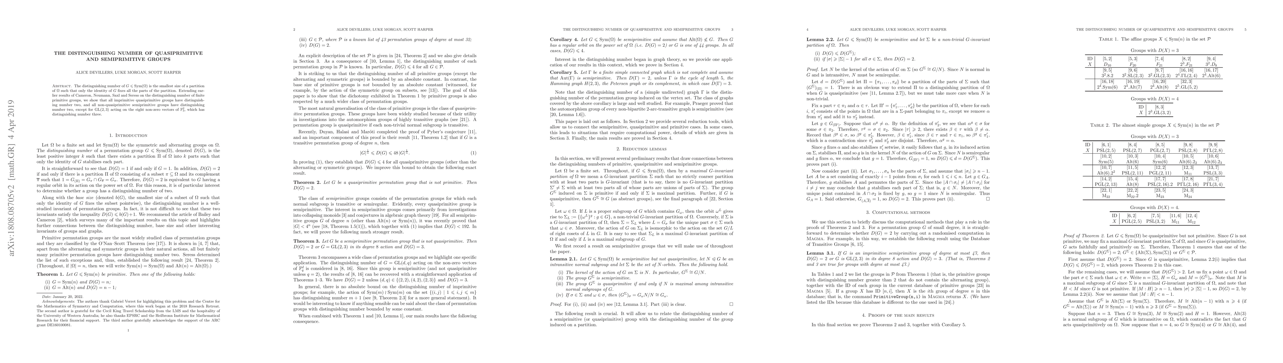The paper establishes that imprimitive quasiprimitive and non-quasiprimitive semiprimitive groups generally have distinguishing number two, with the exception of $\mathrm{GL}(2, 3)$ on $\mathbb{F}_2^3$, which has distinguishing number three. This extends previous findings on the distinguishing number of primitive groups.