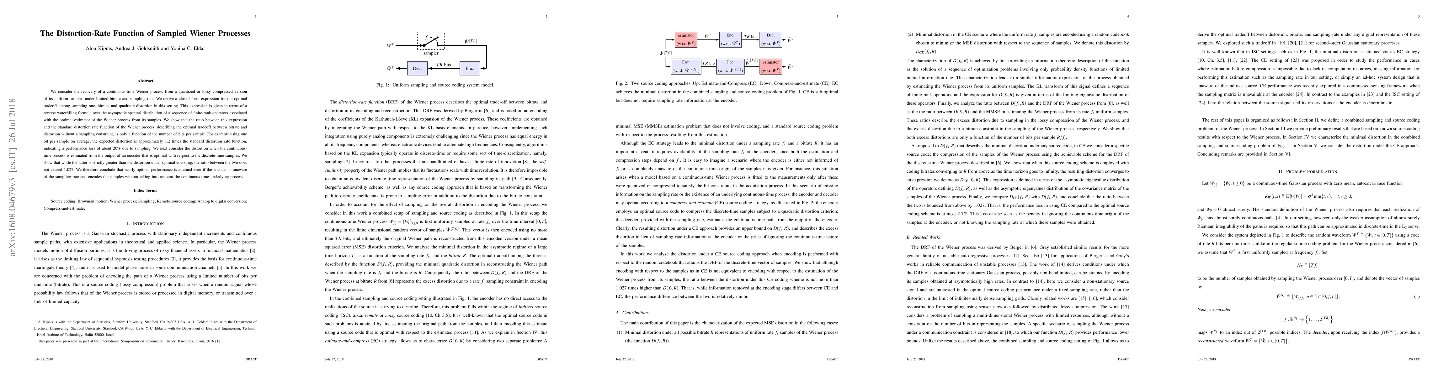 We consider the recovery of a continuous-time Wiener process from a quantized or lossy compressed version of its uniform samples under limited bitrate and sampling rate. We derive a closed form expression for the optimal tradeoff among sampling rate, bitrate, and quadratic distortion in this setting. This expression is given in terms of a reverse waterfilling formula over the asymptotic spectral distribution of a sequence of finite-rank operators associated with the optimal estimator of the Wiener process from its samples. We show that the ratio between this expression and the standard distortion rate function of the Wiener process, describing the optimal tradeoff between bitrate and distortion without a sampling constraint, is only a function of the number of bits per sample. For example using one bit per sample on average, the expected distortion is approximately 1.2 times the standard distortion rate function, indicating a performance loss of about 20% due to sampling. We next consider the distortion when the continuous-time process is estimated from the output of an encoder that is optimal with respect to the discrete-time samples. We show that while the latter is strictly greater than the distortion under optimal encoding, the ratio between the two does not exceed 1.027. We therefore conclude that nearly optimal performance is attained even if the encoder is unaware of the sampling rate and encodes the samples without taking into account the continuous-time underlying process.