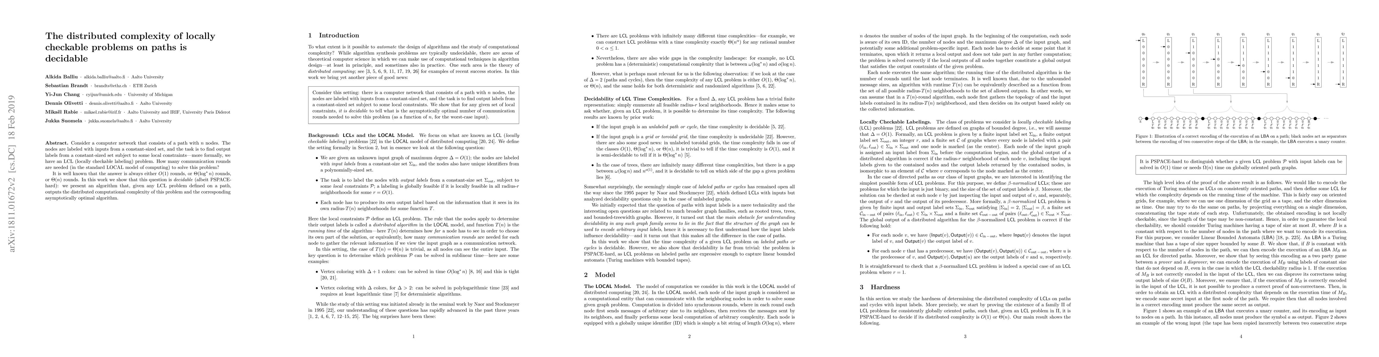 This research paper shows that determining the number of communication rounds needed to solve locally checkable labeling problems on paths is decidable, with implications for distributed computing complexity and algorithms.
