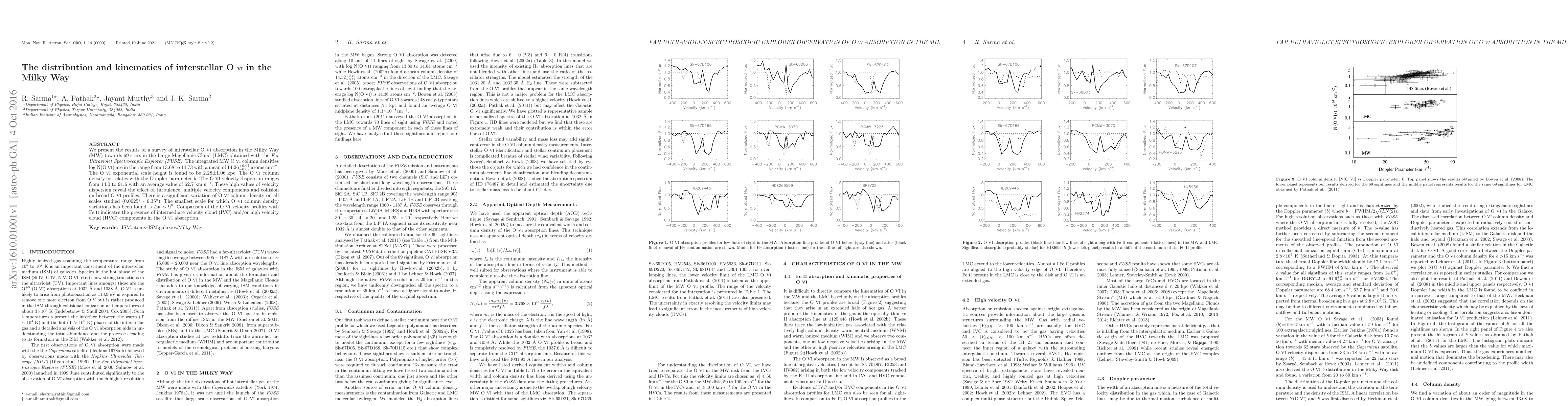 This study uses FUSE data to survey interstellar O~{\small VI} absorption in the Milky Way towards 69 LMC stars, revealing significant turbulence and variations in O~{\small VI} column density, with a mean log N(O~{\small VI}) of 14.26 and a velocity dispersion averaging 62.7 km s$^{-1}$.
