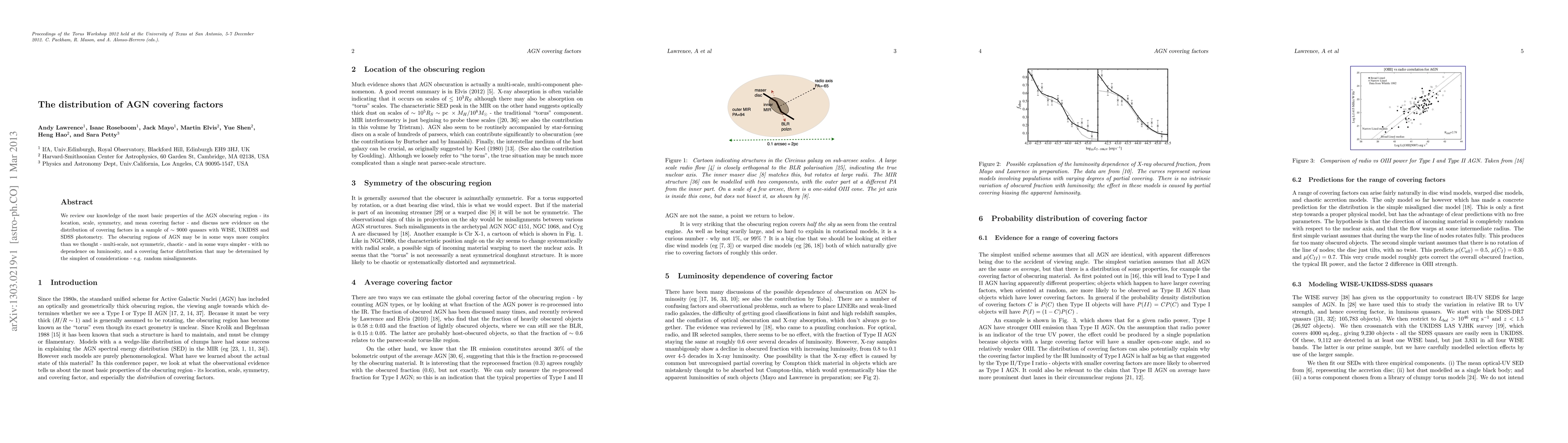 We review our knowledge of the most basic properties of the AGN obscuring region - its location, scale, symmetry, and mean covering factor - and discuss new evidence on the distribution of covering factors in a sample of ~9000 quasars with WISE, UKIDSS, and SDSS photometry. The obscuring regions of AGN may be in some ways more complex than we thought - multi-scale, not symmetric, chaotic - and in some ways simpler - with no dependence on luminosity, and a covering factor distribution that may be determined by the simplest of considerations - e.g. random misalignments.