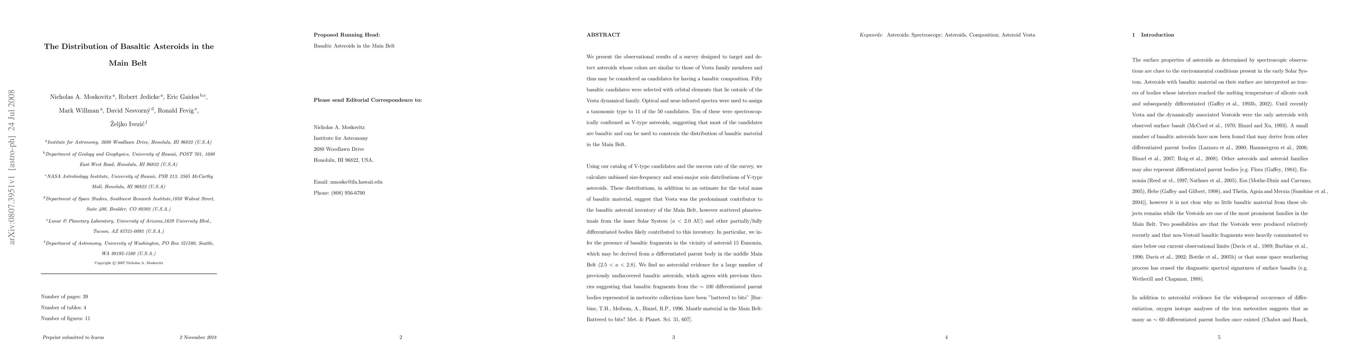 This study identifies 50 basaltic asteroid candidates in the Main Belt, confirming 10 as V-type asteroids. The survey suggests that Vesta is the main source of basaltic material, with contributions from scattered planetesimals and differentiated bodies. No evidence supports a large number of undiscovered basaltic asteroids.