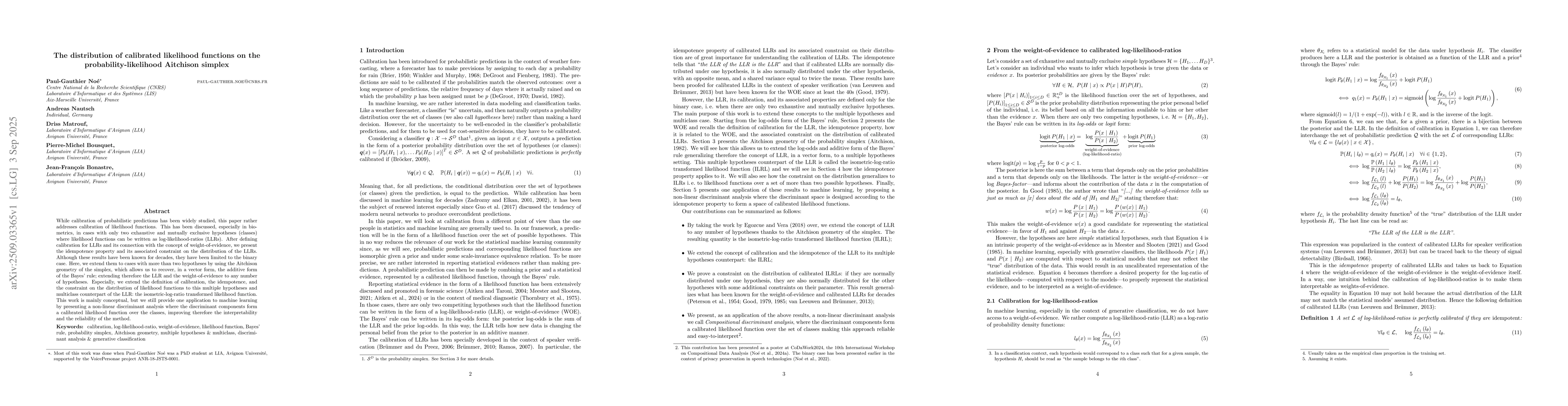 While calibration of probabilistic predictions has been widely studied, this paper rather addresses calibration of likelihood functions. This has been discussed, especially in biometrics, in cases with only two exhaustive and mutually exclusive hypotheses (classes) where likelihood functions can be written as log-likelihood-ratios (LLRs). After defining calibration for LLRs and its connection with the concept of weight-of-evidence, we present the idempotence property and its associated constraint on the distribution of the LLRs. Although these results have been known for decades, they have been limited to the binary case. Here, we extend them to cases with more than two hypotheses by using the Aitchison geometry of the simplex, which allows us to recover, in a vector form, the additive form of the Bayes' rule; extending therefore the LLR and the weight-of-evidence to any number of hypotheses. Especially, we extend the definition of calibration, the idempotence, and the constraint on the distribution of likelihood functions to this multiple hypotheses and multiclass counterpart of the LLR: the isometric-log-ratio transformed likelihood function. This work is mainly conceptual, but we still provide one application to machine learning by presenting a non-linear discriminant analysis where the discriminant components form a calibrated likelihood function over the classes, improving therefore the interpretability and the reliability of the method.