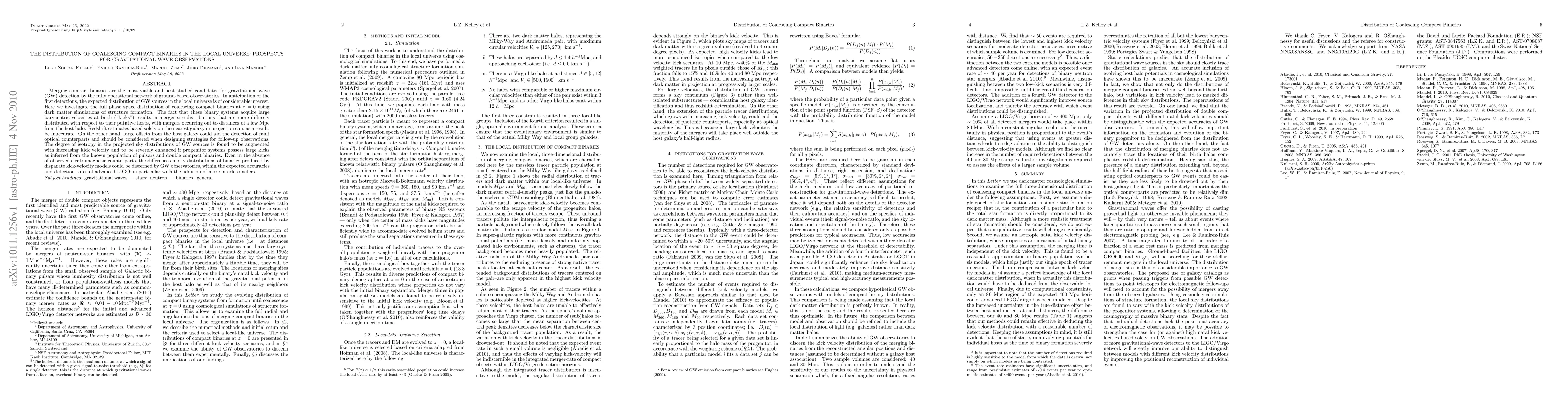 This paper investigates the distribution of coalescing compact binaries in the local universe, emphasizing their potential for gravitational wave detection. It finds that binaries often have large velocities at birth, leading to diffuse merger site distributions and potentially aiding in the detection of faint optical counterparts. The study highlights the importance of considering these factors when designing follow-up observation strategies.